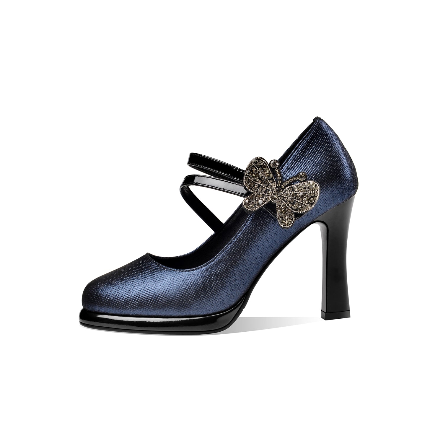 Nine Seven Women's Leather Handmade Round Toe Belts High Heel Pumps with Butterfly Décor