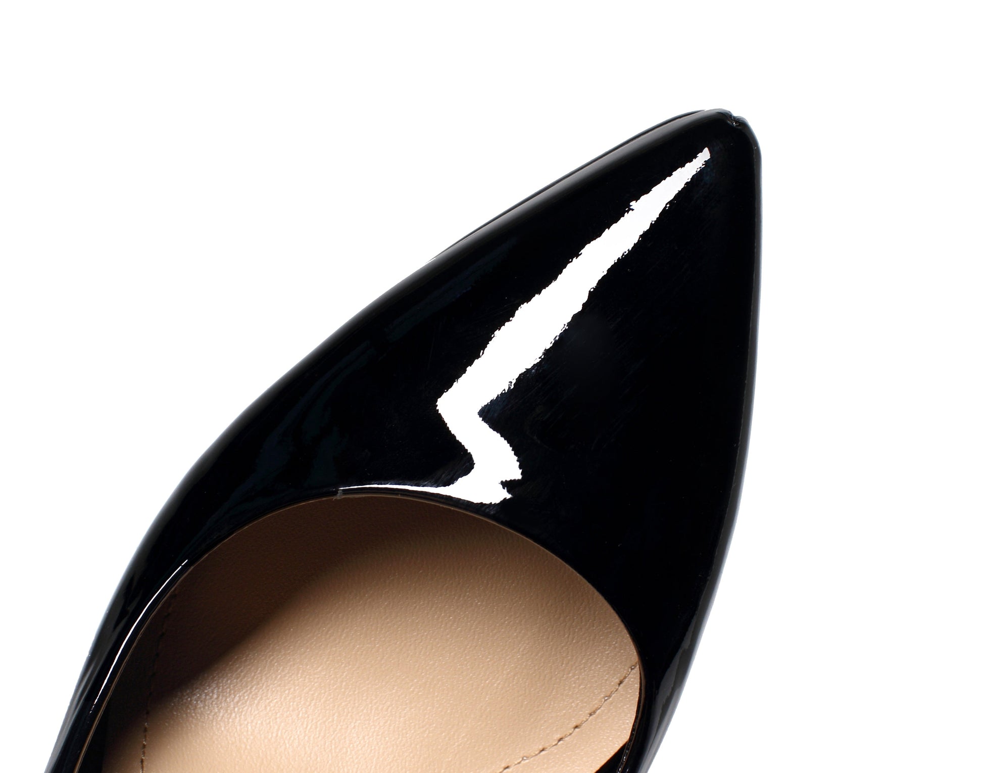 This pumps are designed with glossy patent leather, pointed toe and supper high spool heels.Slip-resistant sole could show your confidence in every step.
