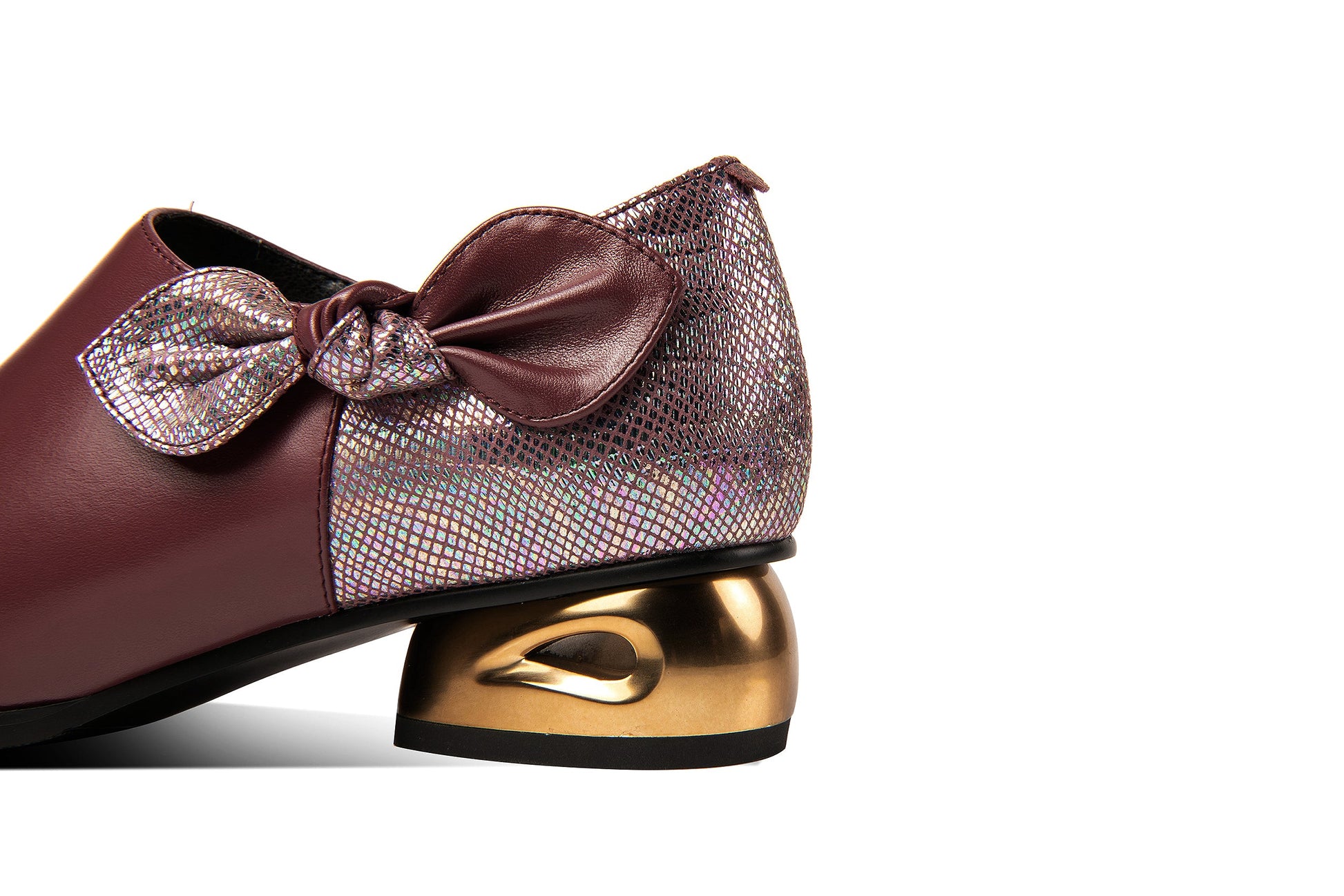 Nine Seven Women's Genuine Leather Handmade Sparkling Pointed Toe Low Chunky Heel Side Zip Up Cute Bow Design Flats Shoes