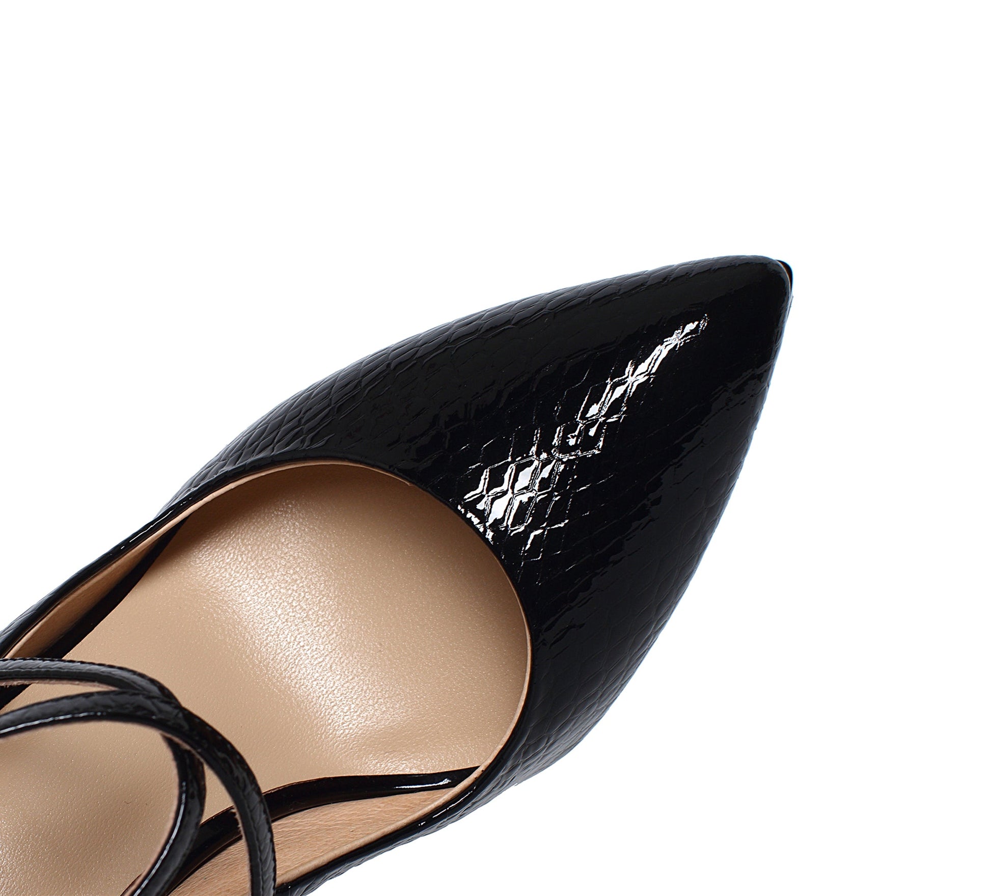 Nine Seven Women's Handmade Genuine Leather High Stiletto Heel Platform Clear Pointed Toe Strap Buckle Pumps with Pendant