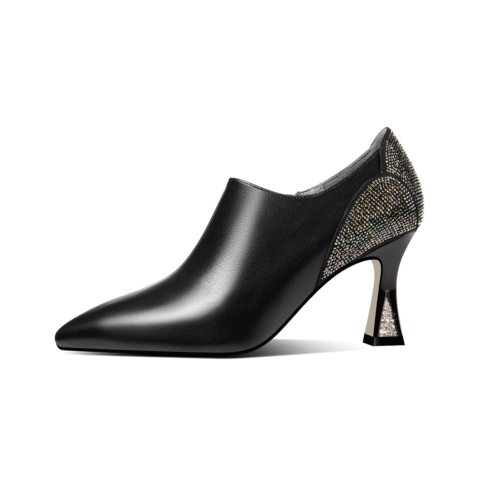 Nine Seven Women's Genuine Leather Handmade Side Zip Up High Heel Pointed Toe Sparkling Glitter Oxford Pumps