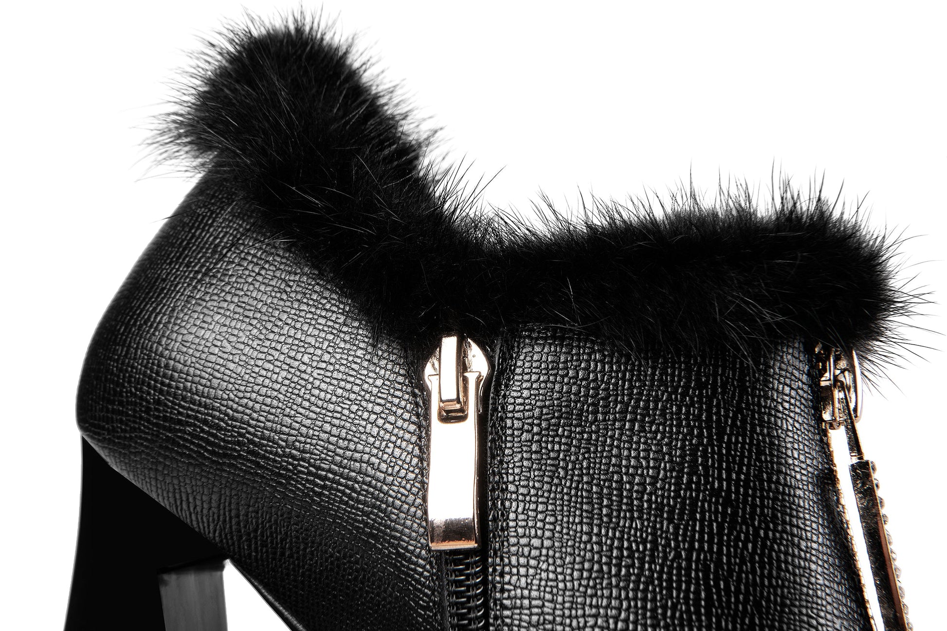 Soft fur decor pumps are designed with genuine leather, pointed toe, elegant spool heel, zip to keep up with fashion trend. These fashion shoes can go with many different styles of outfits.