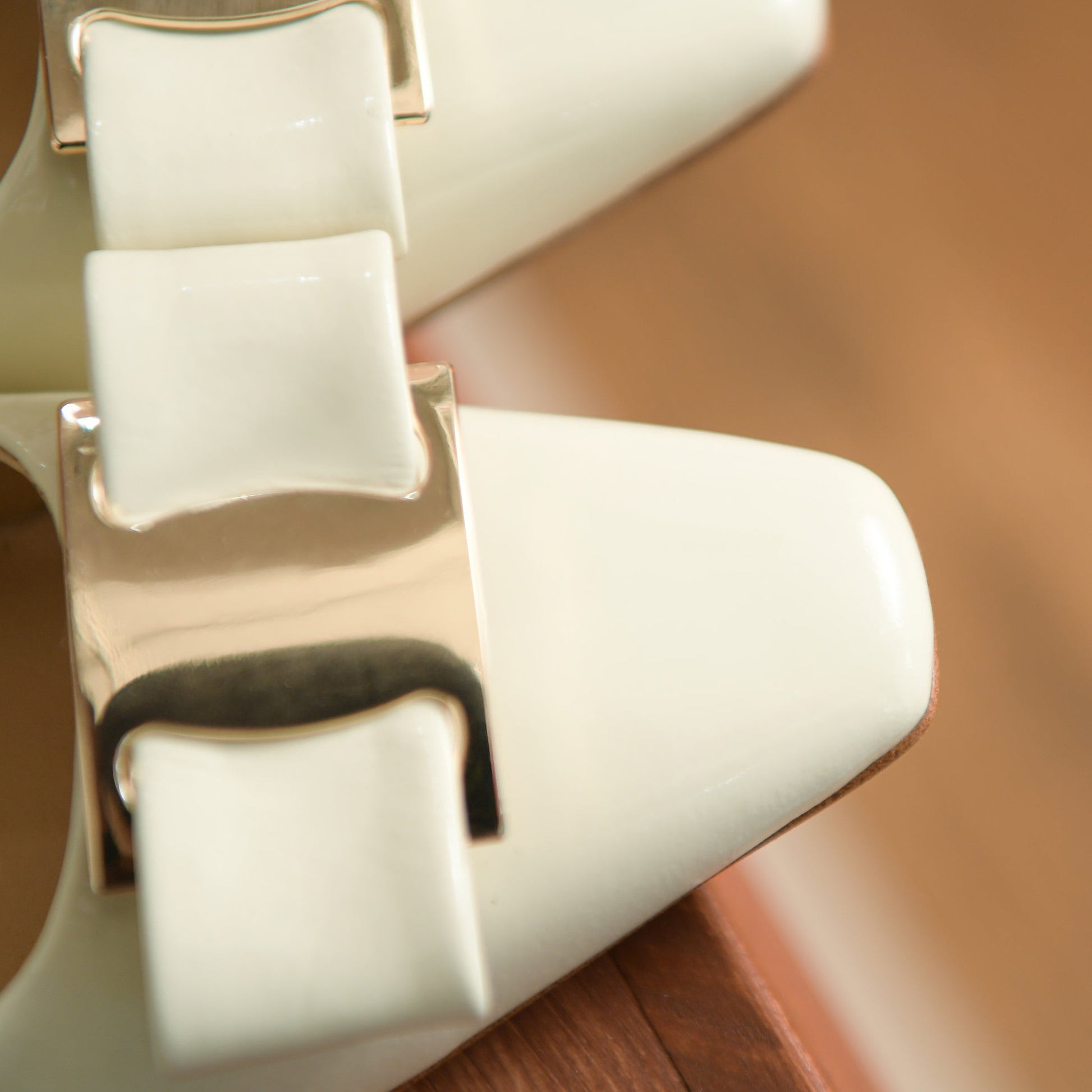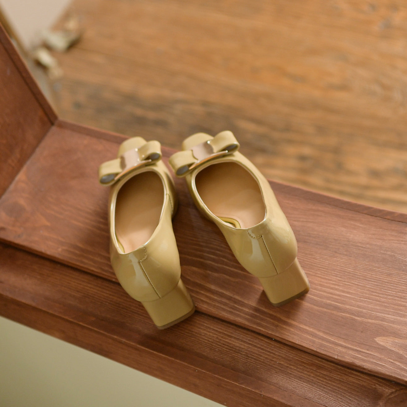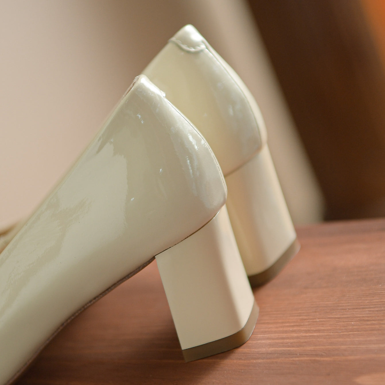 Graceful pump shoes feature in patent leather, square toe and easy slip on closure.Soft insole could make you feel comfortable.