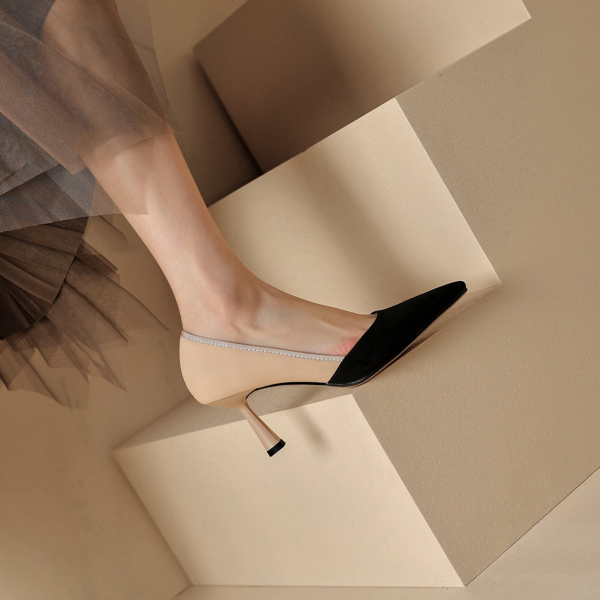 These loafer pumps are designed with suede and genuine leather, pointed toe and mid heels.Slip-resistant sole could make you feel confident.