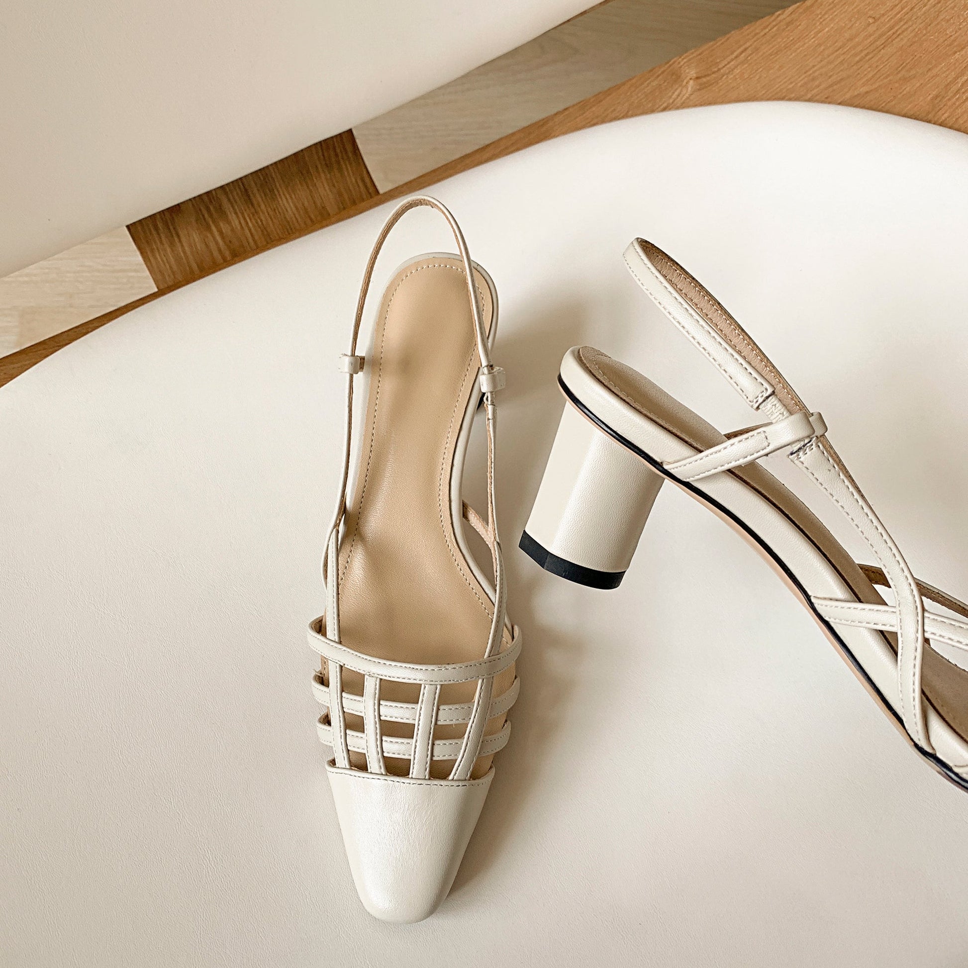 Nine Seven Genuine Leather Women's Handmade Closed Square Toe Chunky Heel Slingback Slip On Sandal Pumps