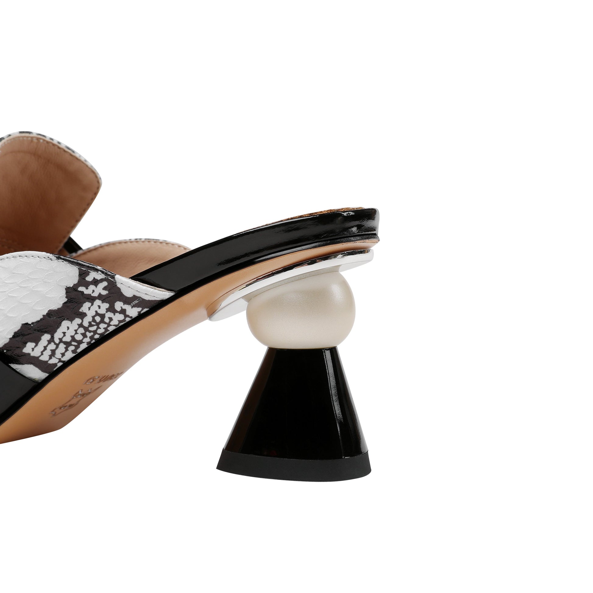Nine Seven Women's Handmade Leather Comfortable Unique Design Heel Peep Toe Slip On Mule Pumps