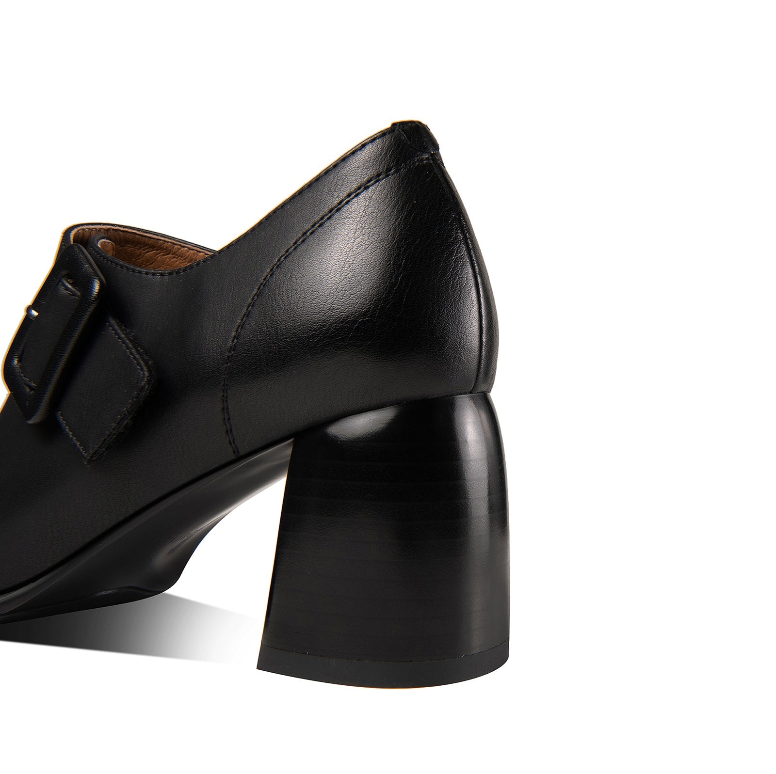 Nine Seven Genuine Leather Women's Handmade Block Heel Side Zip Up Oxford Pumps with Modern Buckle