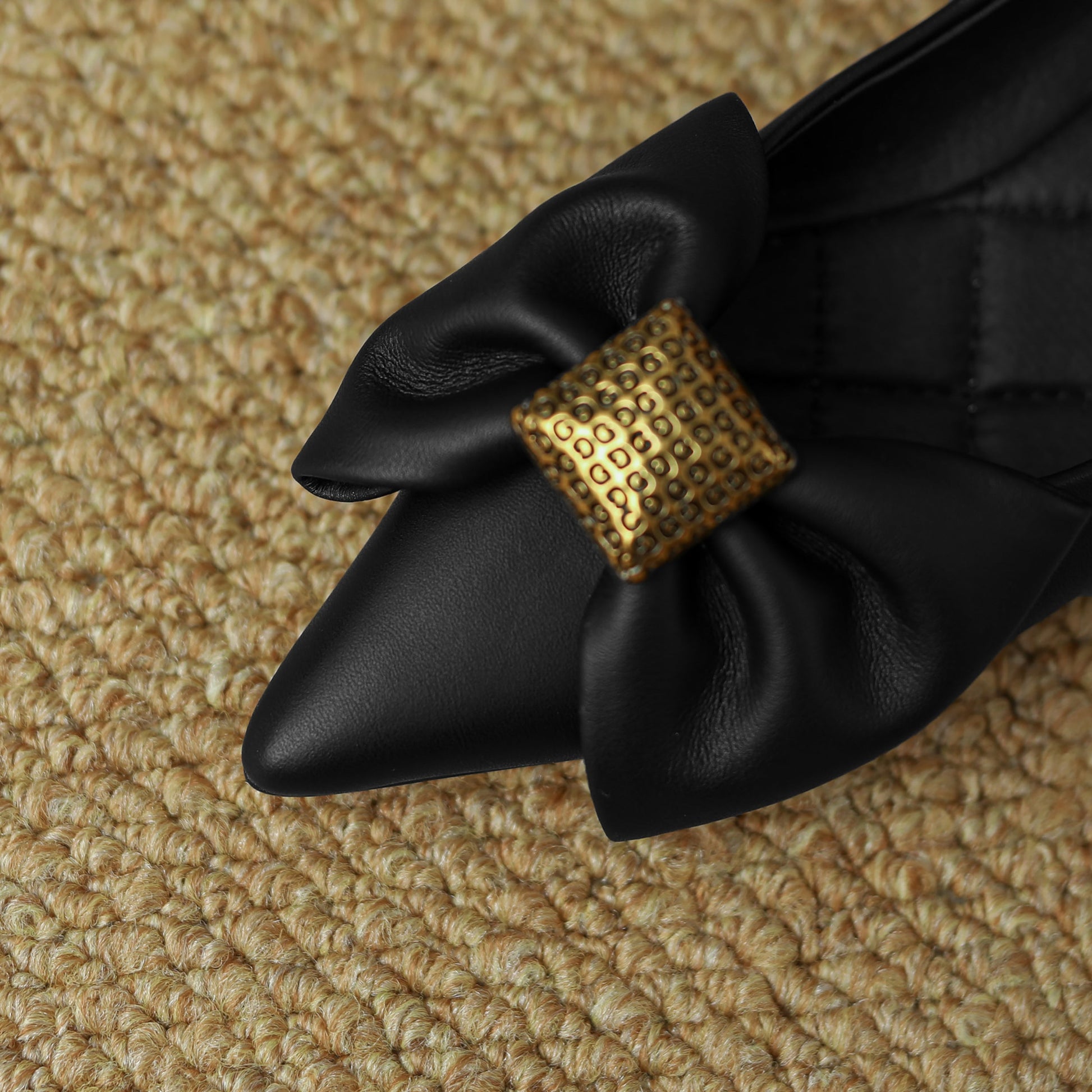 Nine Seven Women's Genuine Leather Handmade Pointed Toe Décor Bow Slip on Ballet Flats Shoes