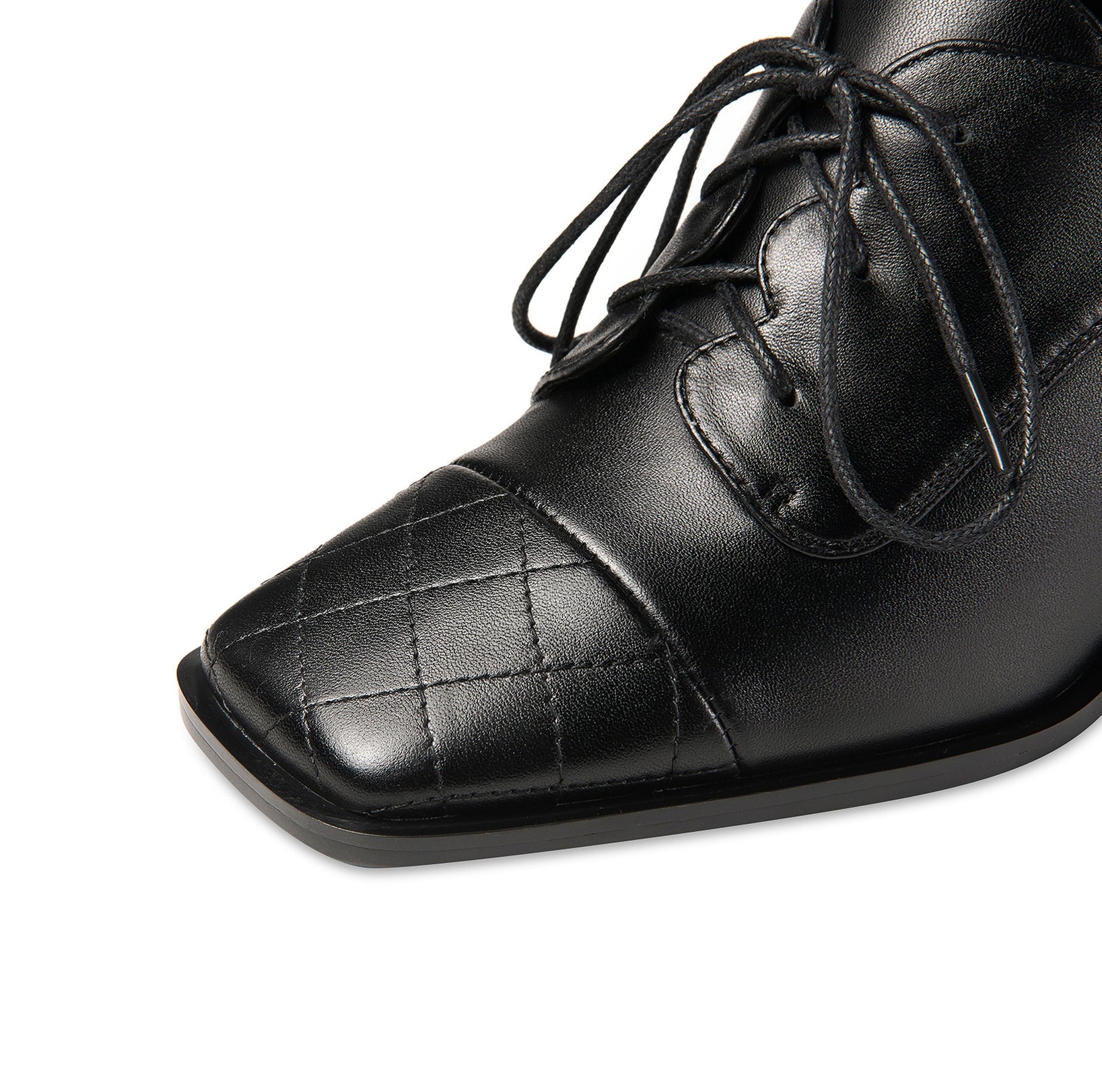 Nine Seven Genuine Leather Women's Handmade Classic Square Toe Chunky Heel Lace Up Oxford Pump Shoes