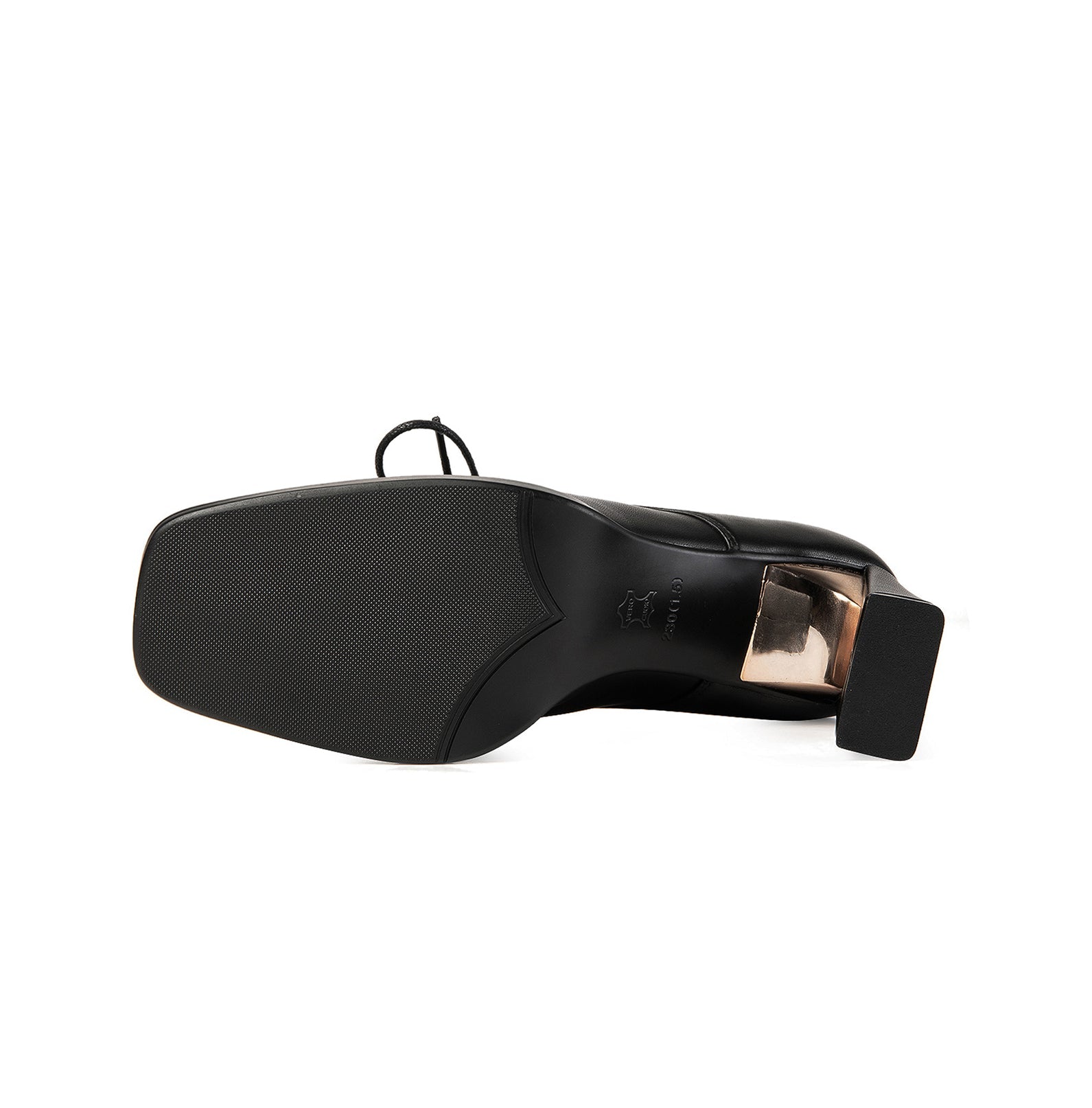 Stylish pump shoes feature in genuine leather, square toe,selftie and mid heel.Soft insole could make you feel comfortable.