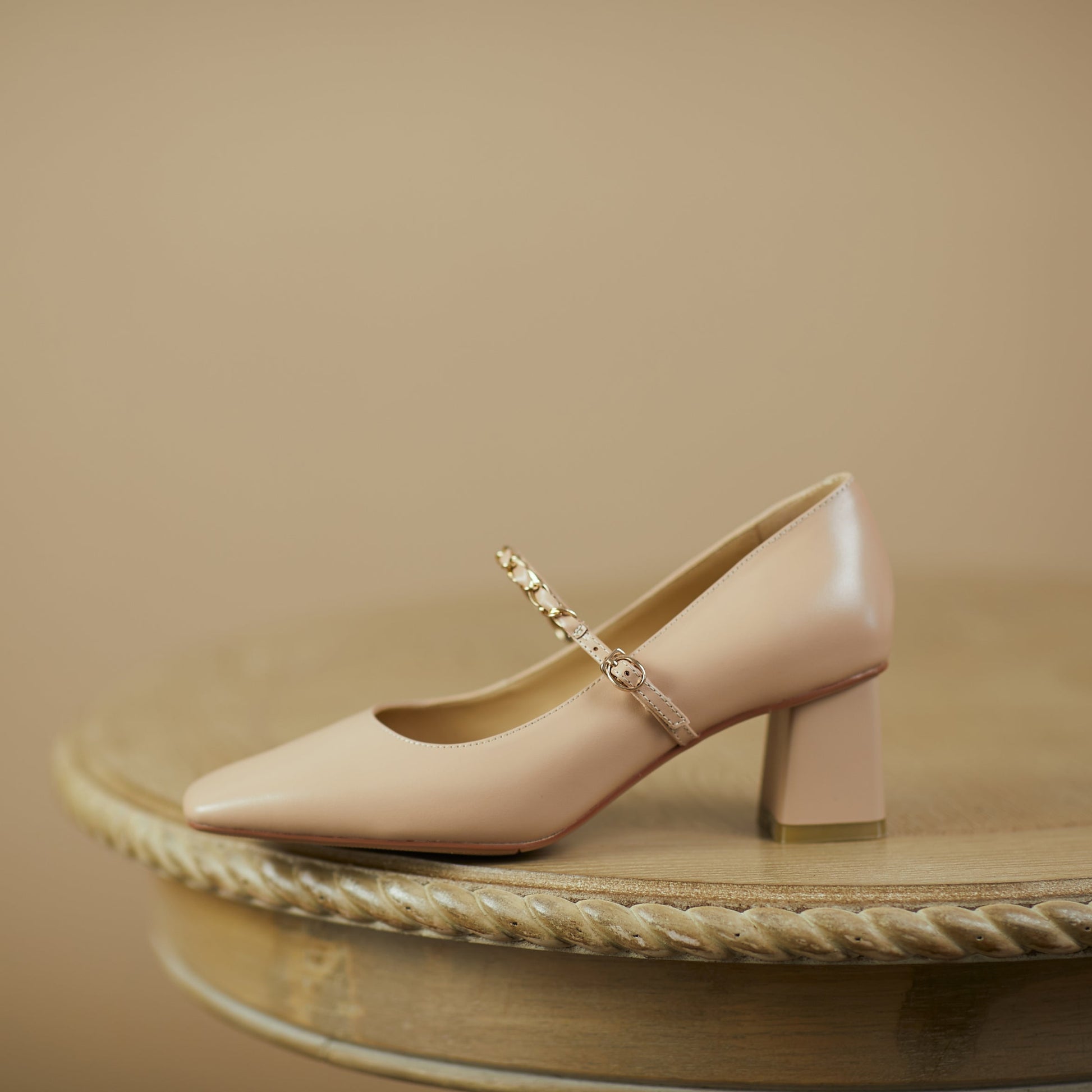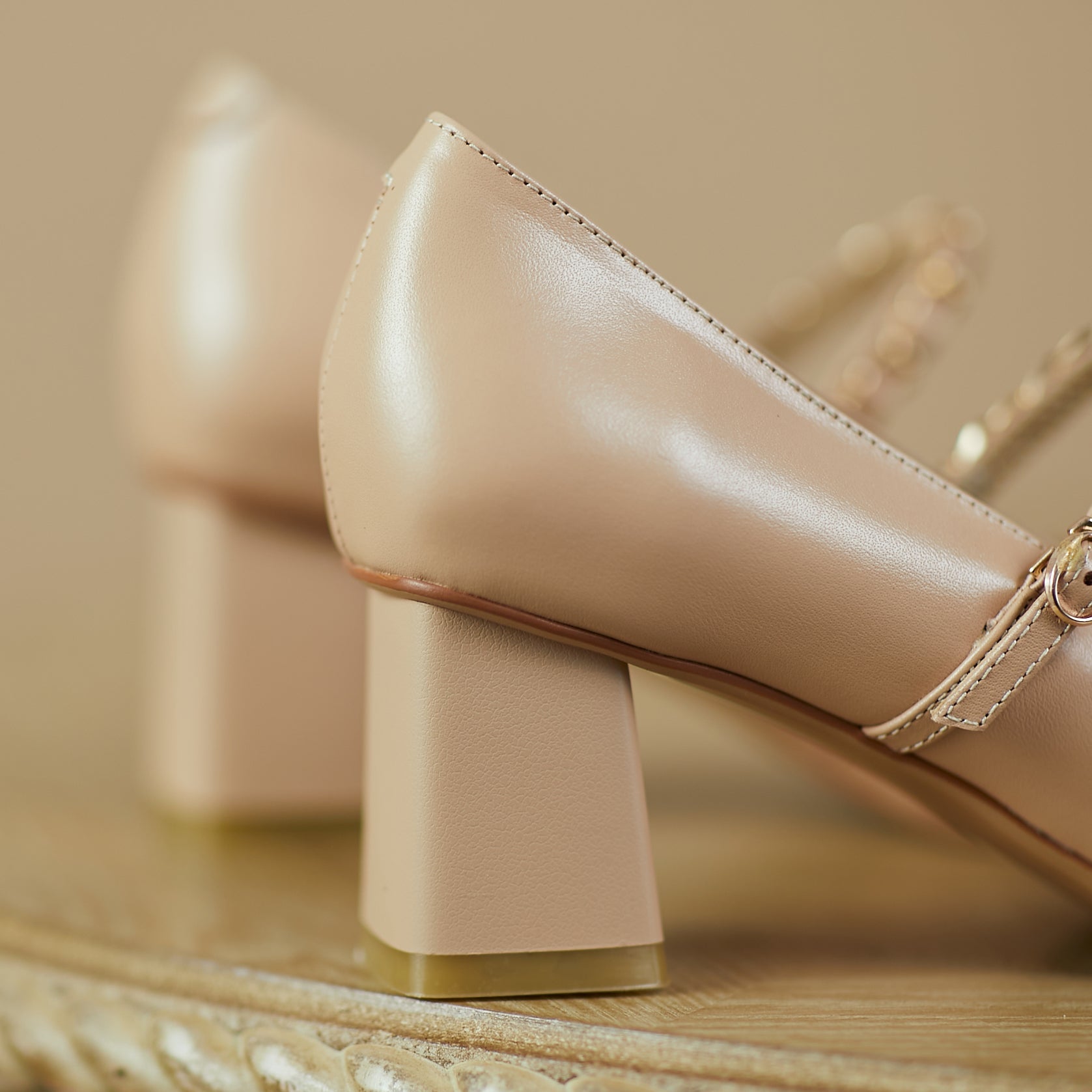 Nine Seven Women's Genuine Leather Handmade Mid Chunky Heel Classic Square Toe Buckle Retro Mary Jane Pump Shoes