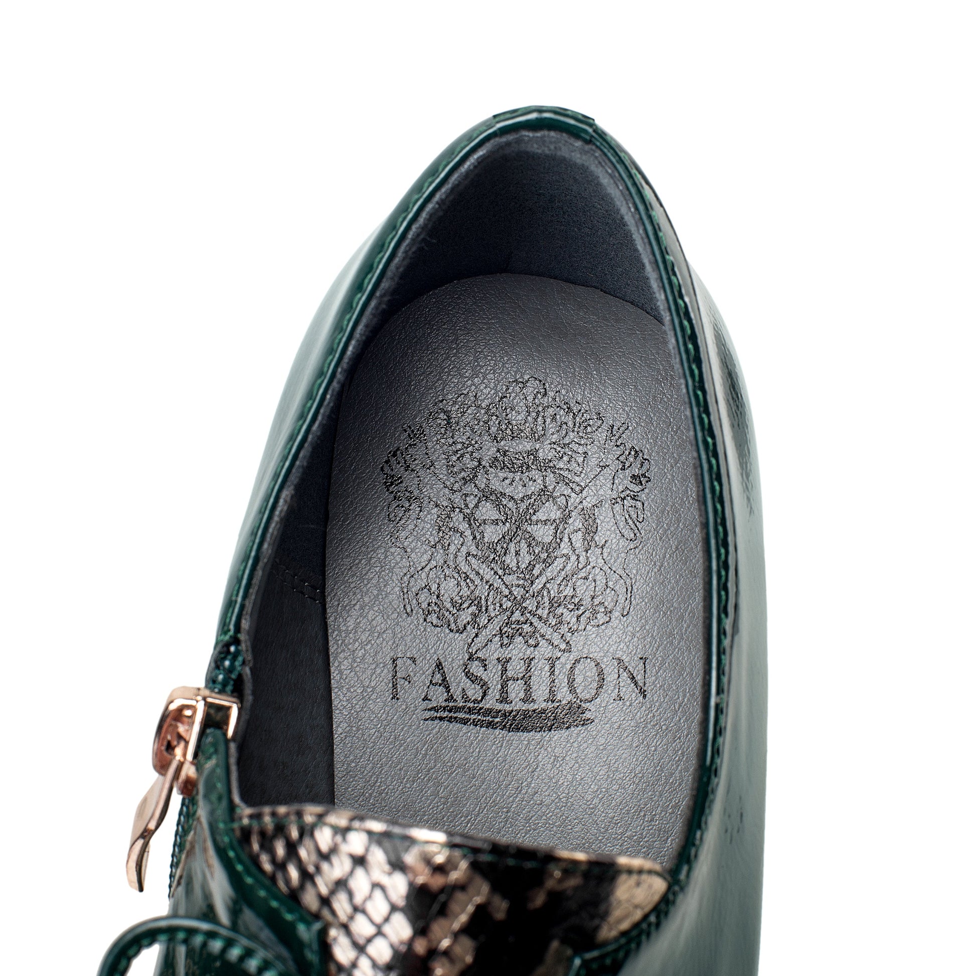 Nine Seven Women's Patent Leather Handmade High Spool Heel Pointed Toe Zip Up Pump Shoes with Bownot