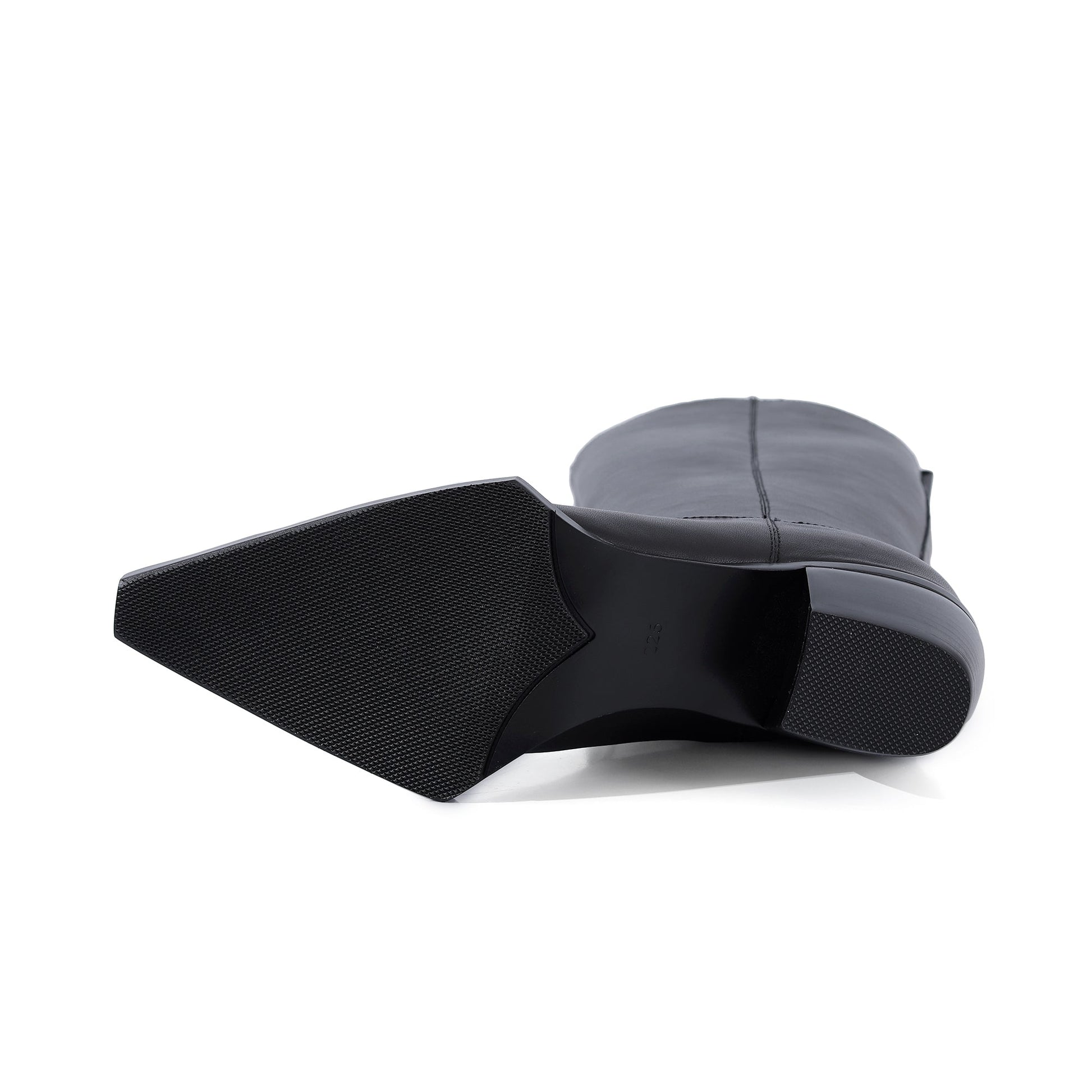 Nine Seven Women's Handmade Genuine Leather Classic Pointed Toe Mid Block Heel Slip Up Weatern Style Knee High Boots