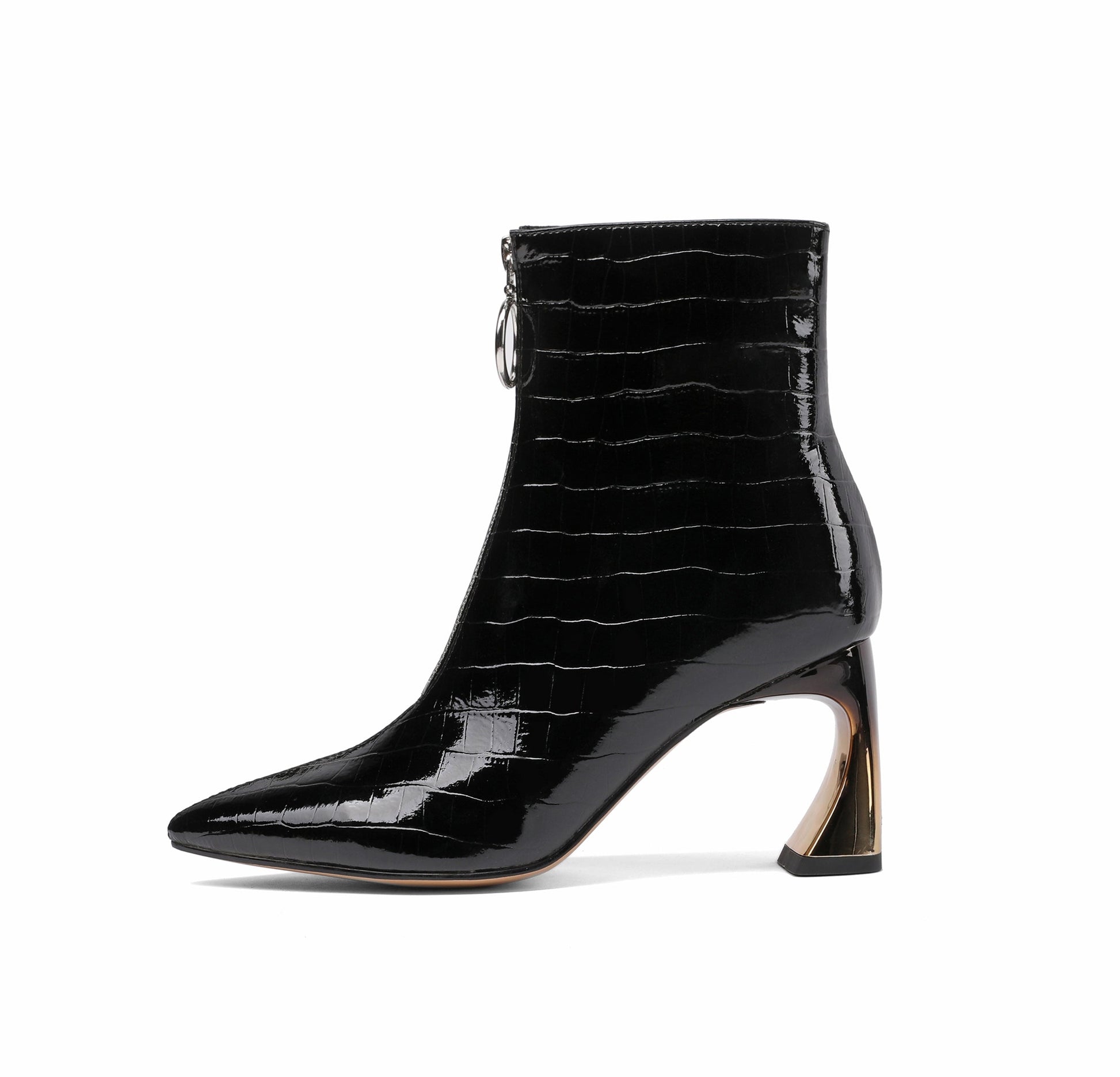 Stylish boots are designed with pointed toe and high heel. Front zipper is trendy and convenient.It is suitable for party, club and many other occasions.