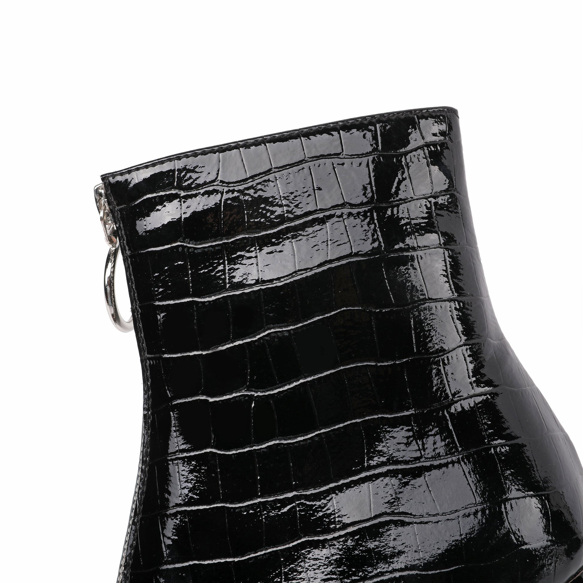 Nine Seven Women's Handmade Patent Leather Pointed Toe Stylish Front Zip Up High Spool Heel Ankle Boots
