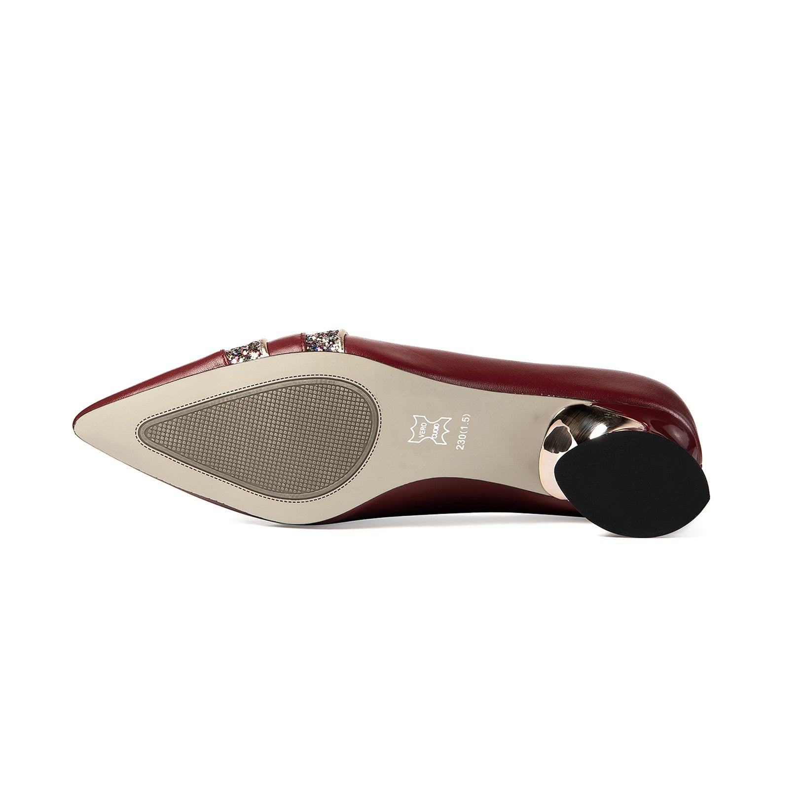 Graceful genuine leather pump shoes are designed with pointed toe and comfortable spool heel. Slip on closure makes this pumps effortless to take on and off. It is suitable for party, club, wedding and many other occasions.
