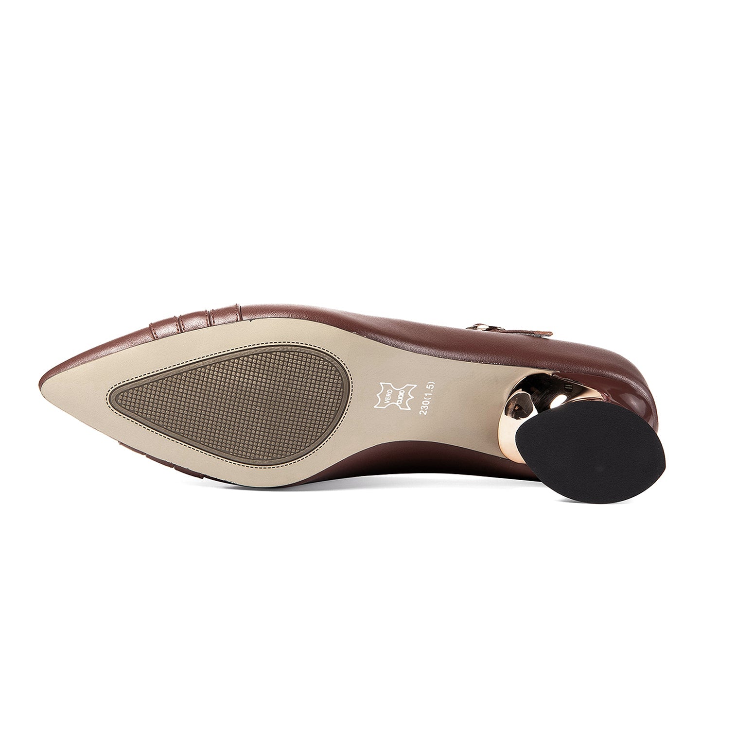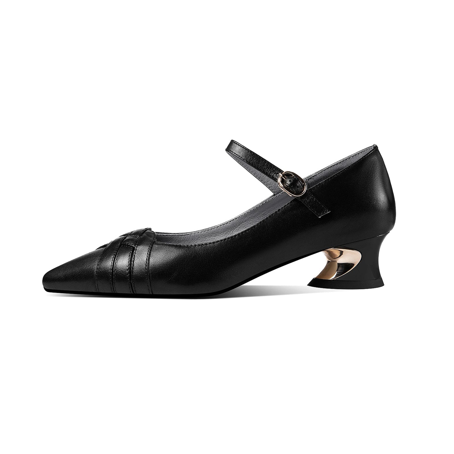 Elegant pump shoes feature in genuine leather, pointed toe,buckle and low heel.Soft insole could make you feel comfortable.