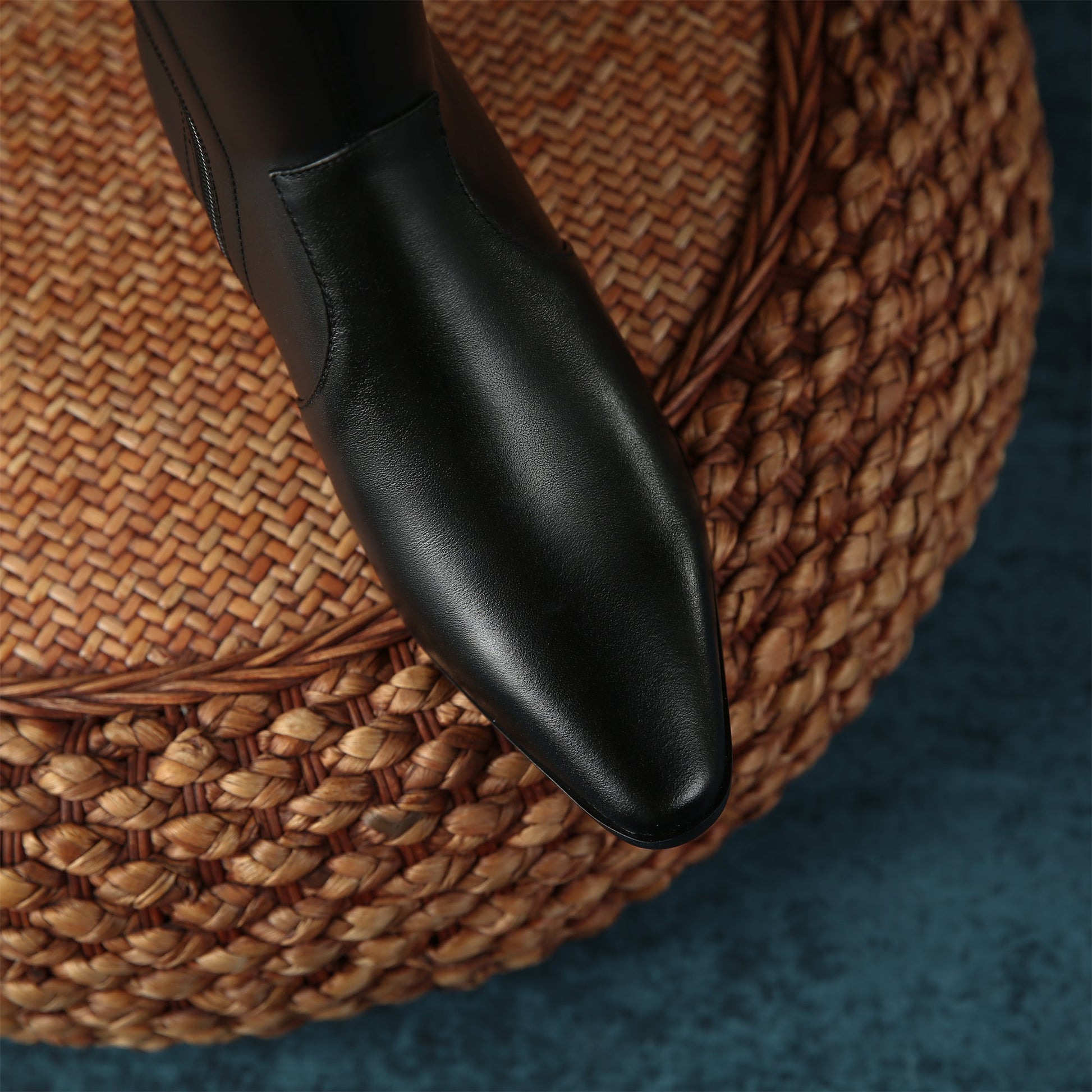 Nine Seven Women's Handmade Leather Comfortable Chunky Heel Side Half Zipper Round Toe Knee-High Boots