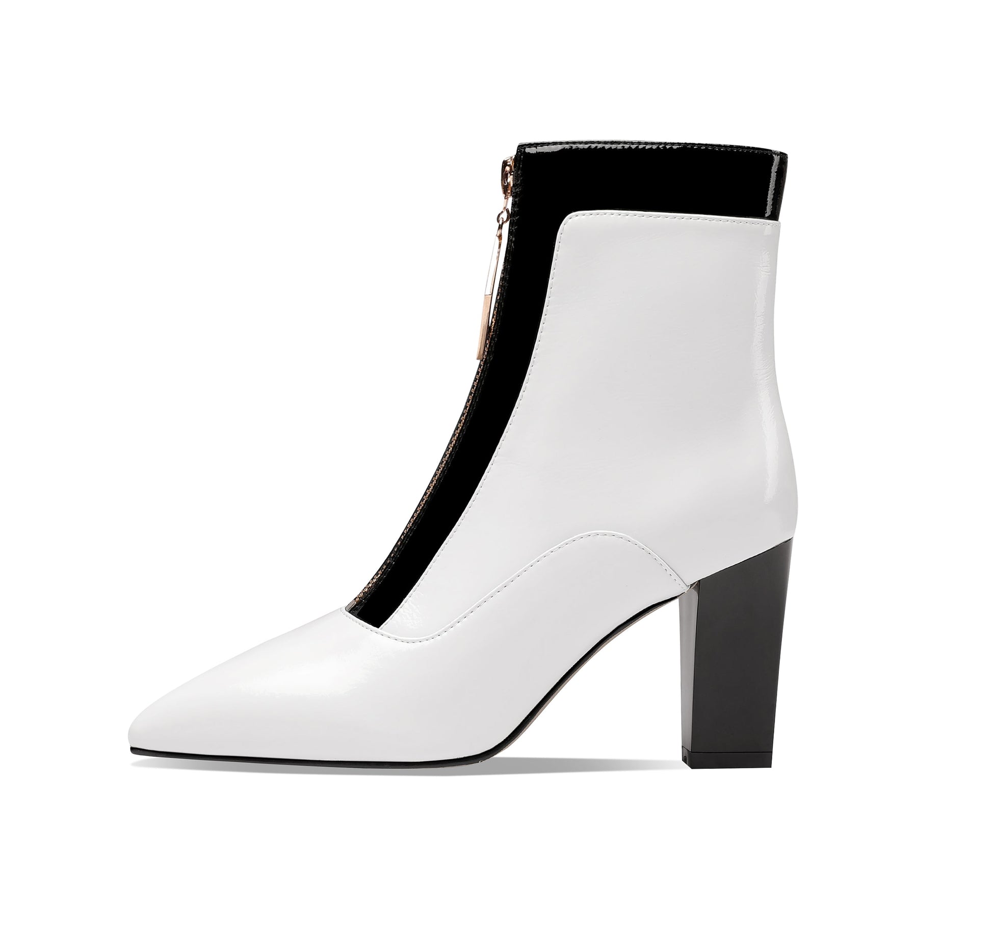 These modern boots are designed with genuine leather,front zipper, pointed toe and high heels.Slip-resistant sole could make you feel confident.