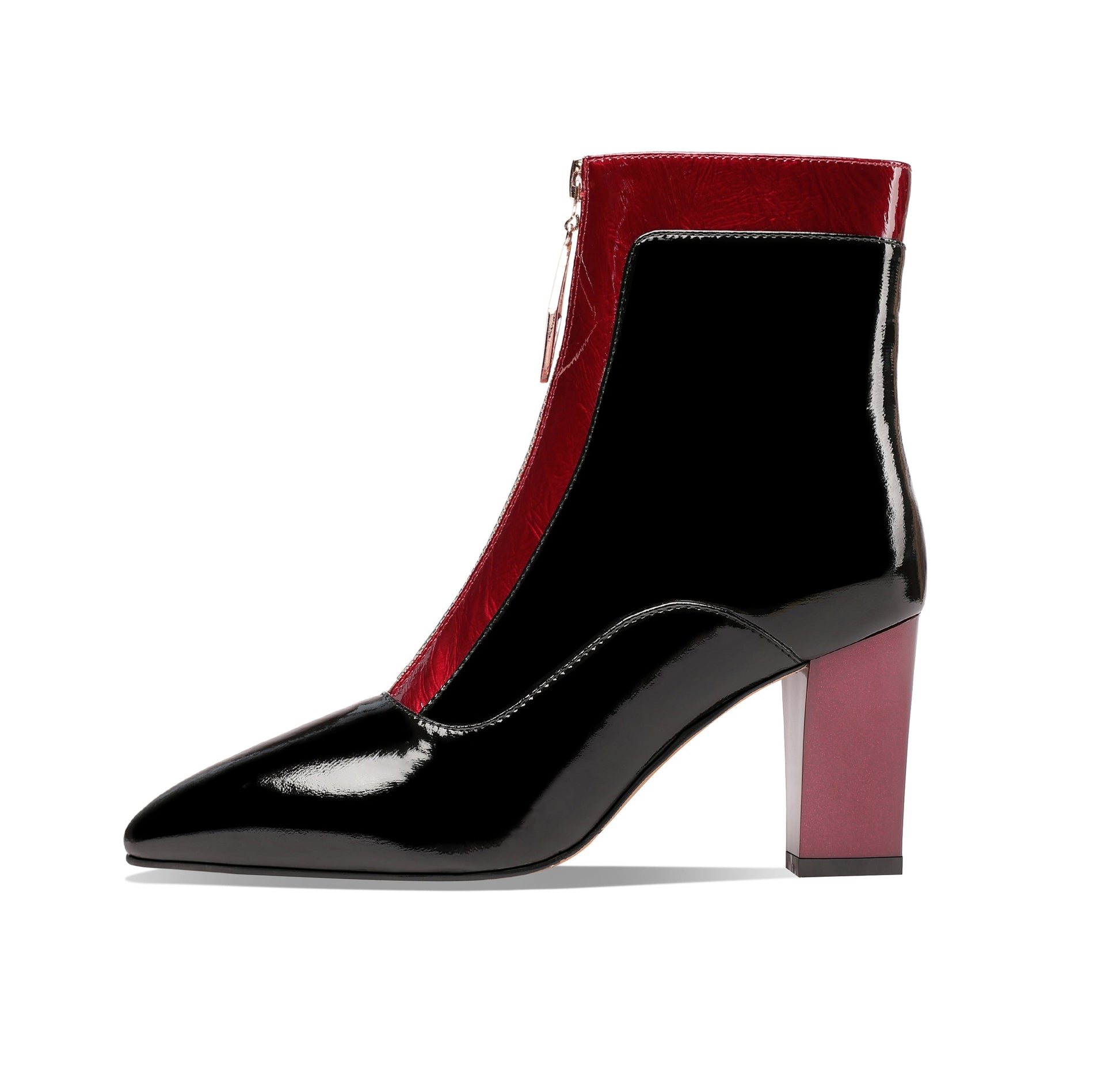 Nine Seven Women's Handmade Genuine Leather Clear Pointed Toe Chunky Heel Stylish Front Zip Ankle Booties