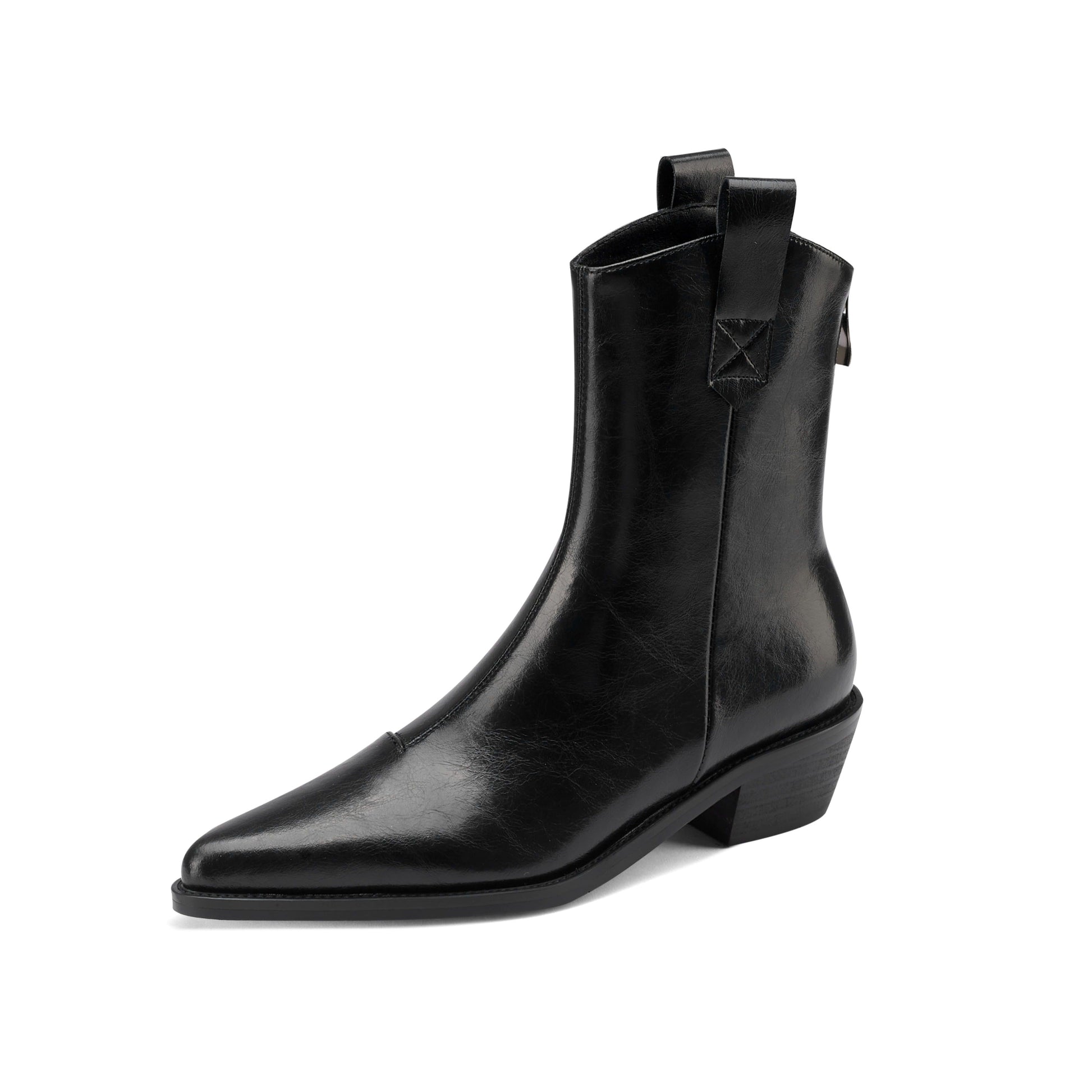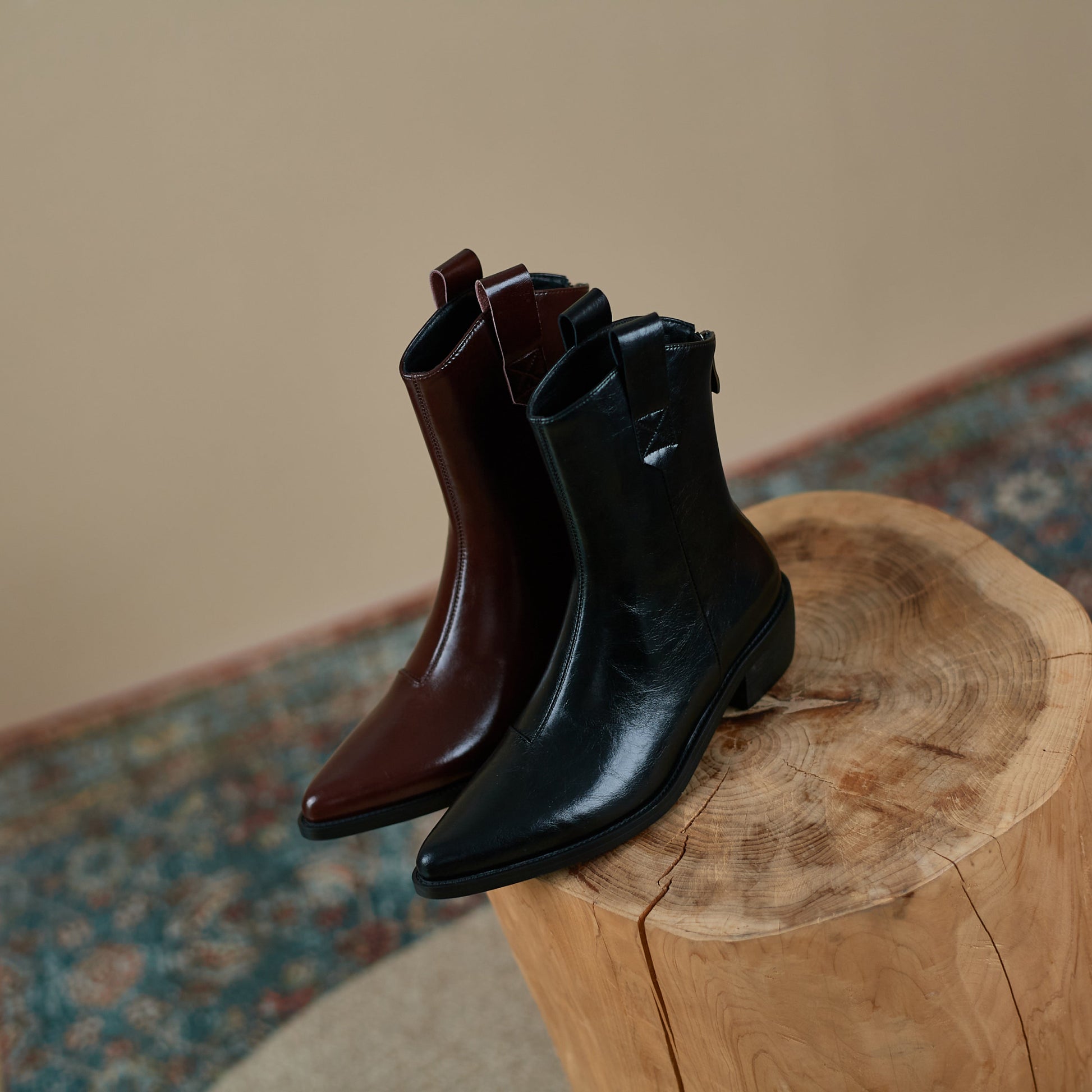 Nine Seven Genuine Leather Women's Pointed Toe Back Zip Up Handmade Chunky Heels Stylish Western Boots