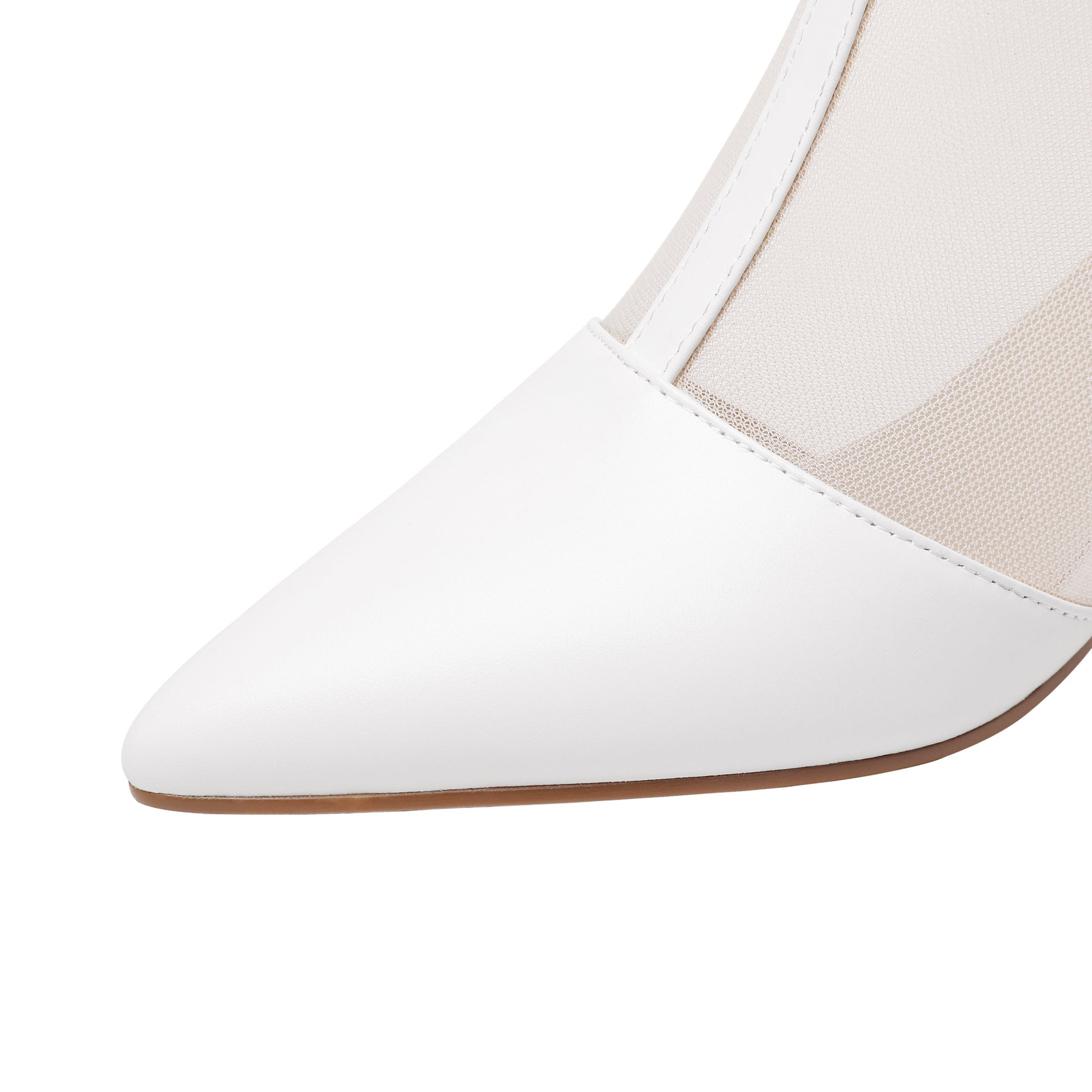 Modern summer boots are designed with leather and mesh, pointy toe, crystal and chunky heels.Slip-resistant sole could make you feel confident.