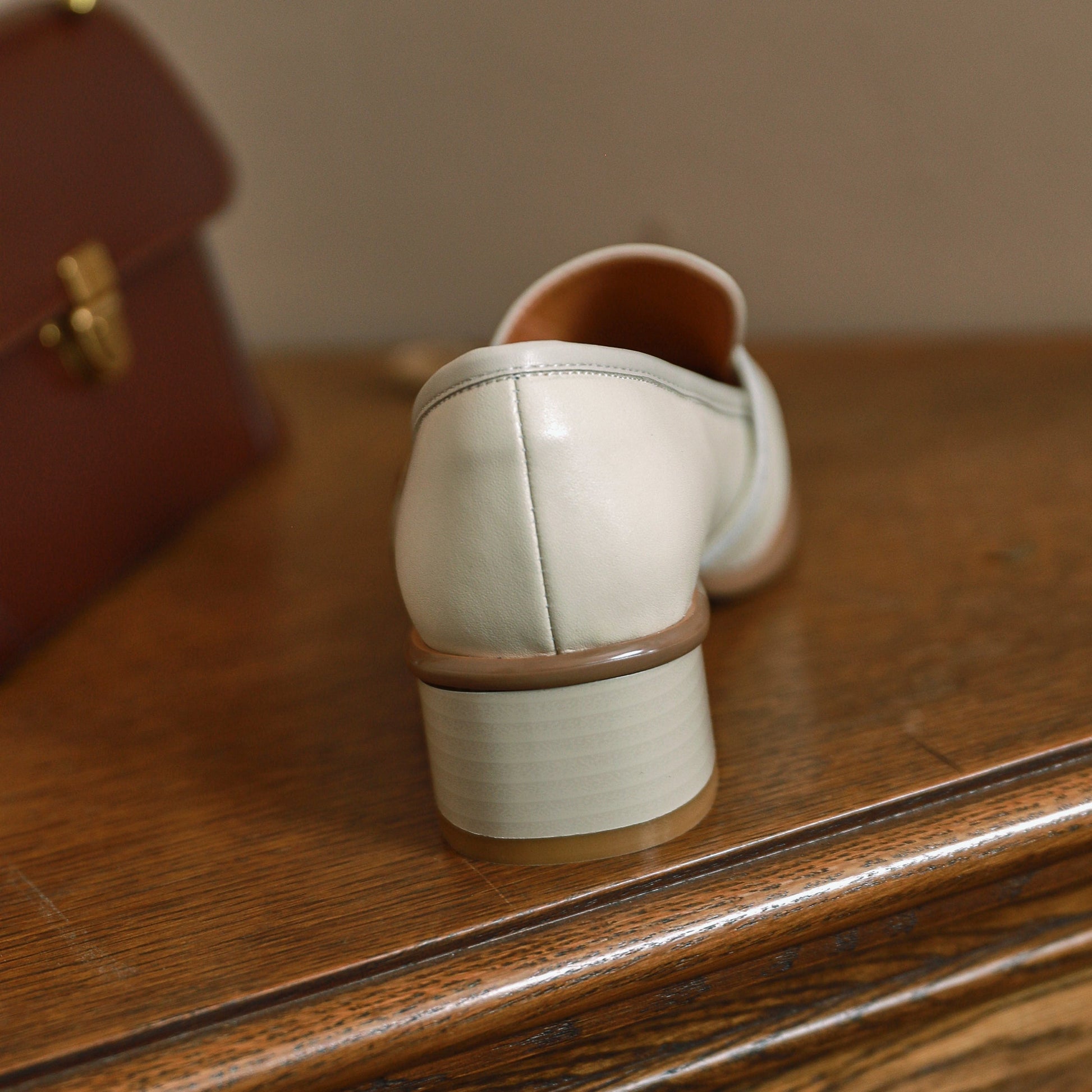 Casual loafers designed with square toe, genuine leather and low chunky heel can make you feel comfortable with every steps.