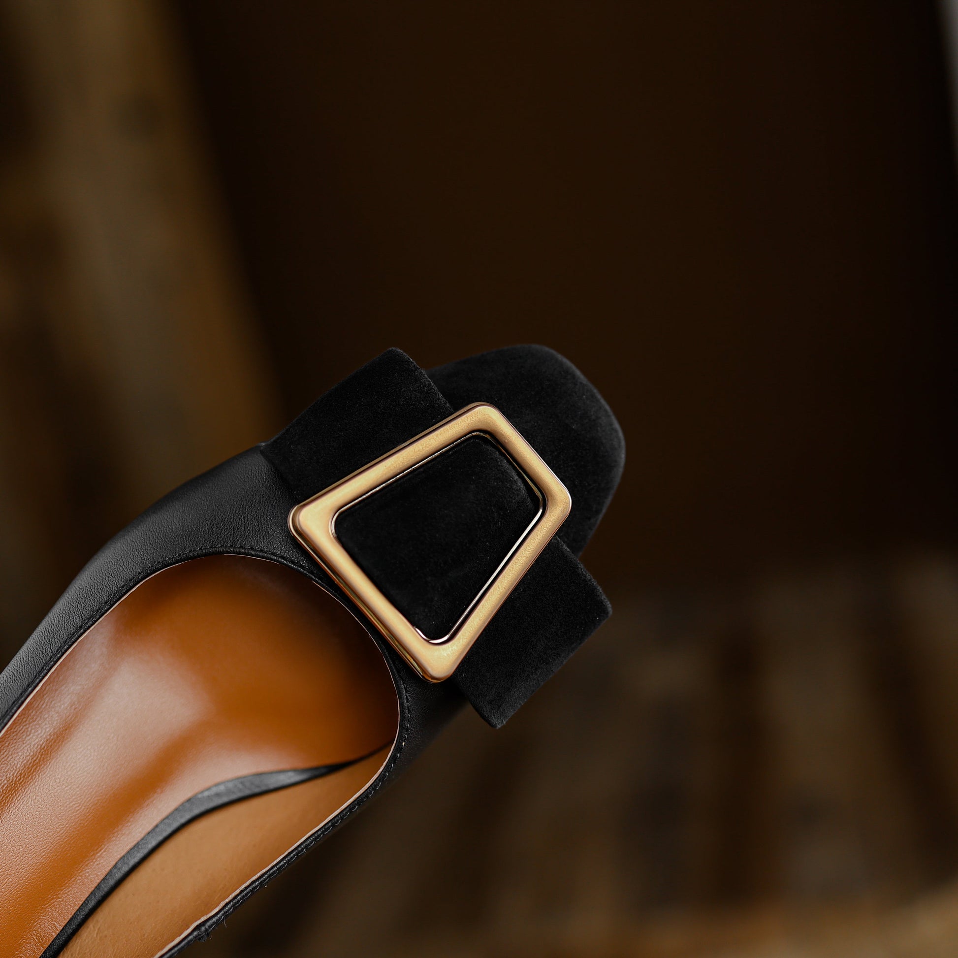 Nine Seven Women's Handmade Genuine Leather Chunky Heel Suede Square Toe Pumps Shoes