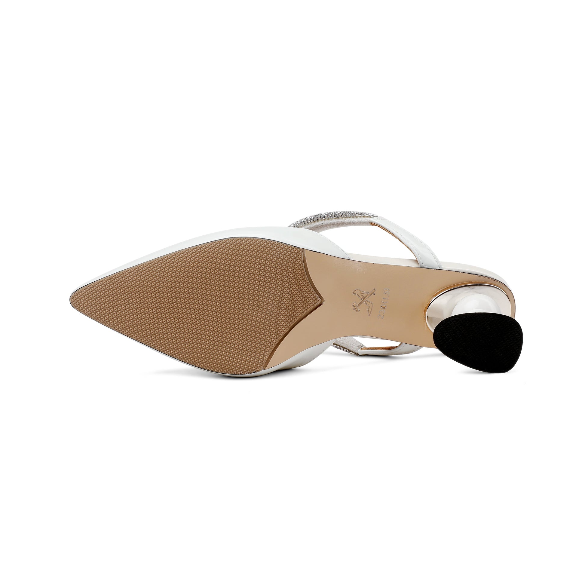 Nine Seven Women's Glossy Patent Leather Handmade Closed Toe Cone Heel Mule Sandals with Sparkling Glitter