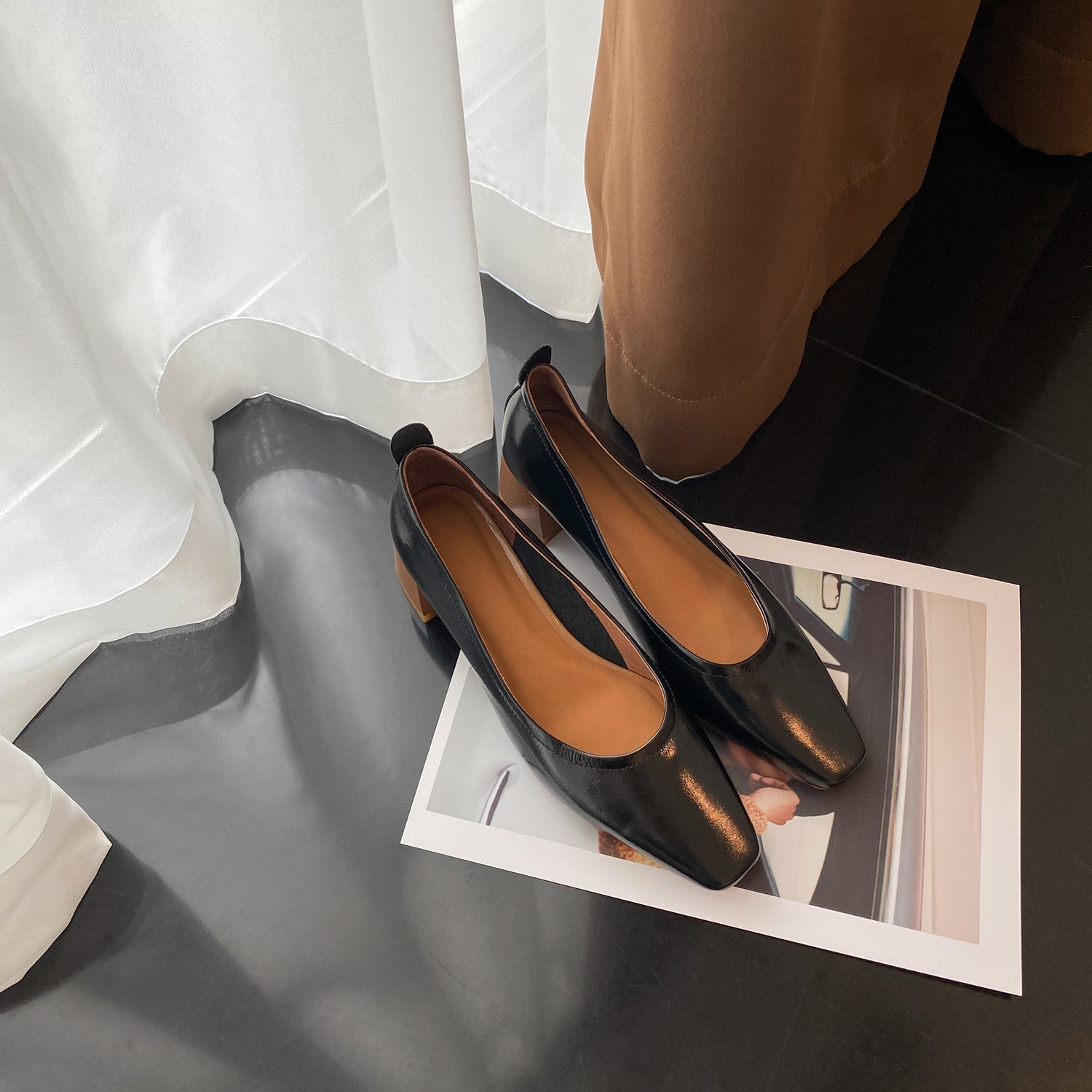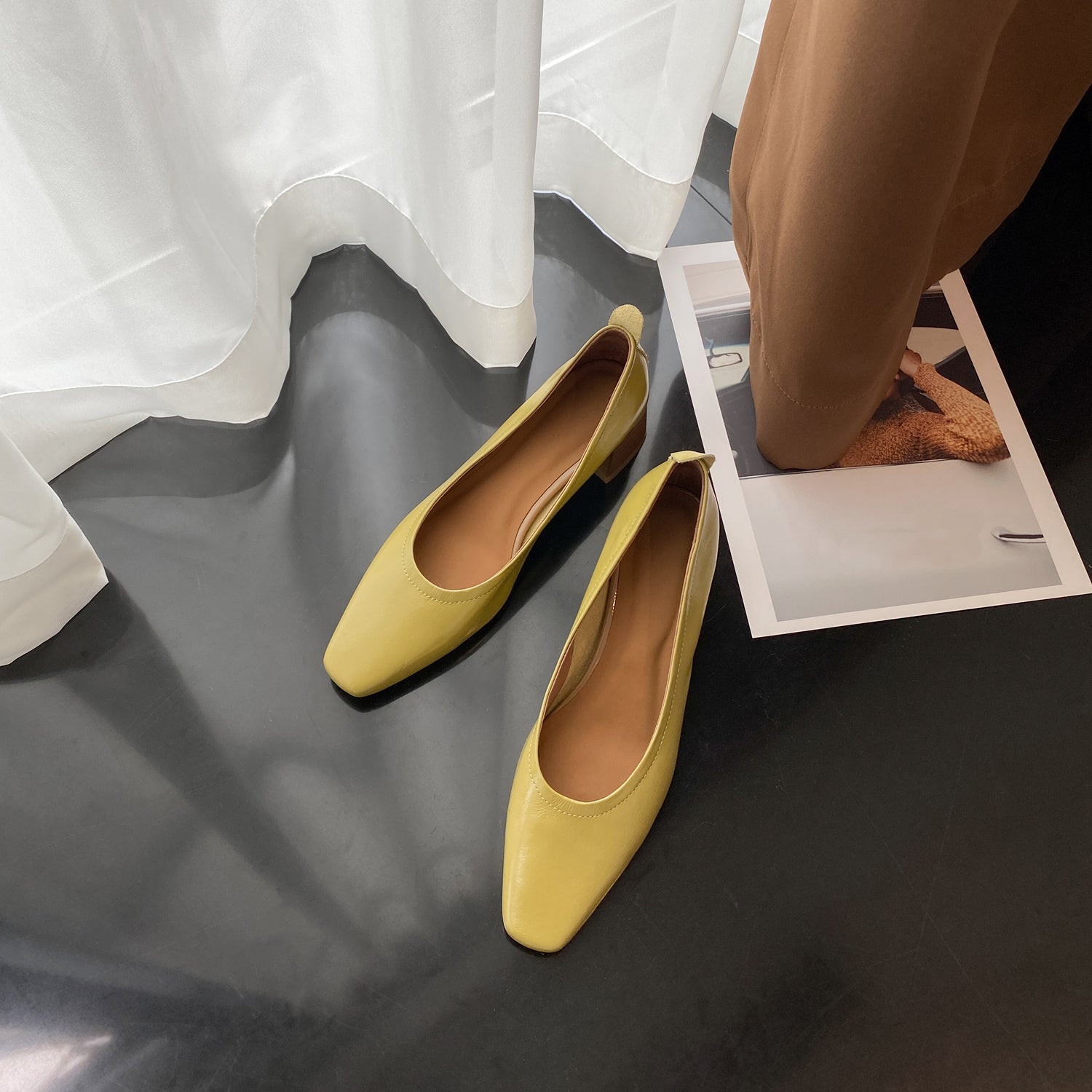 Stylish pump shoes are designed with genuine leather, comfortable chunky heel, slip on to keep up with fashion trend.