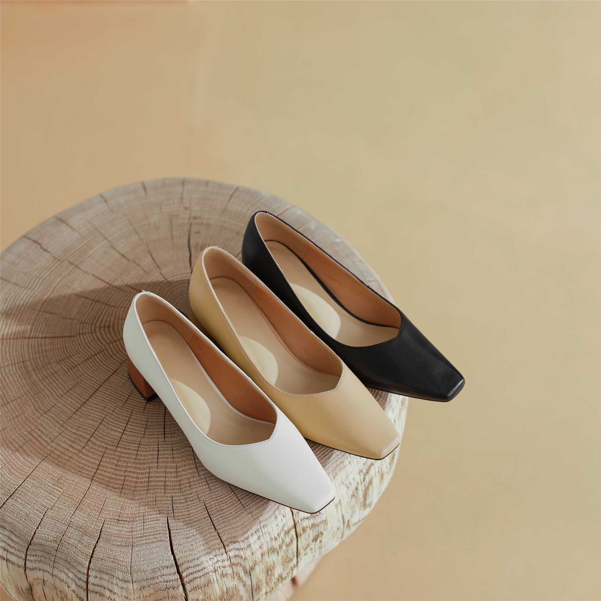 Nine Seven Women's Square Toe Genuine Leather Handamde Low Chunky Heel Casual Loafers