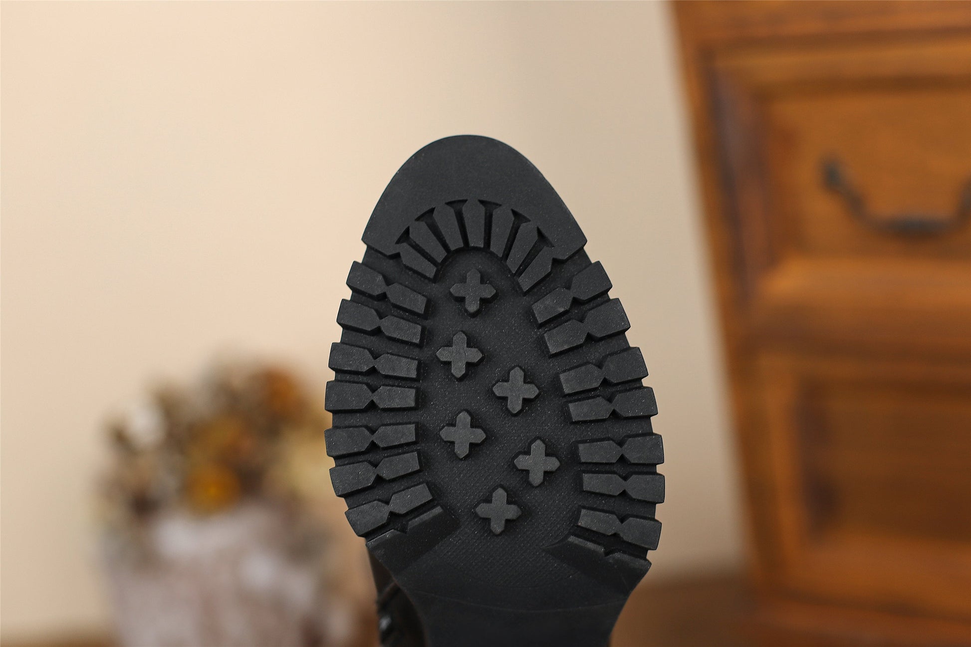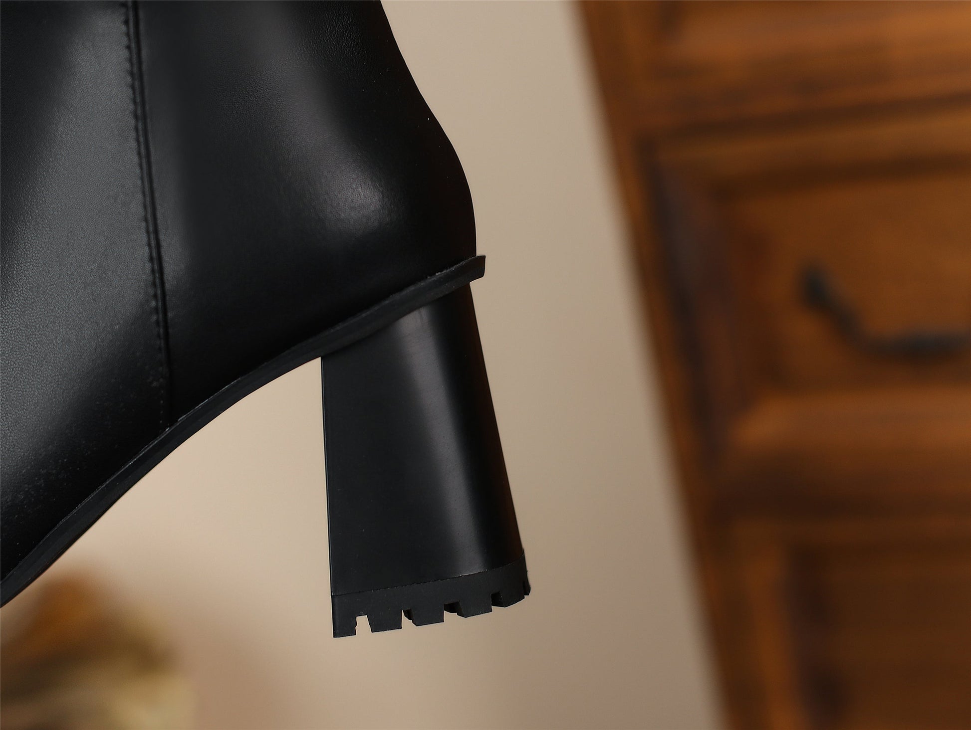Chic knee high boots designed with genuine leather, round toe, side zipper and high chunky heels to keep up with fashion trend.