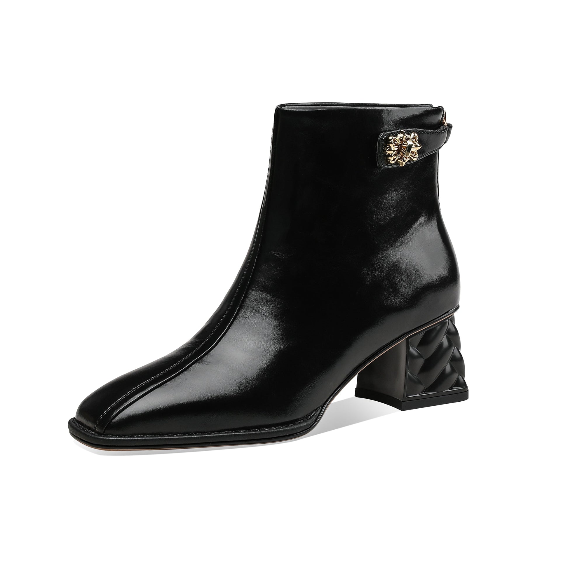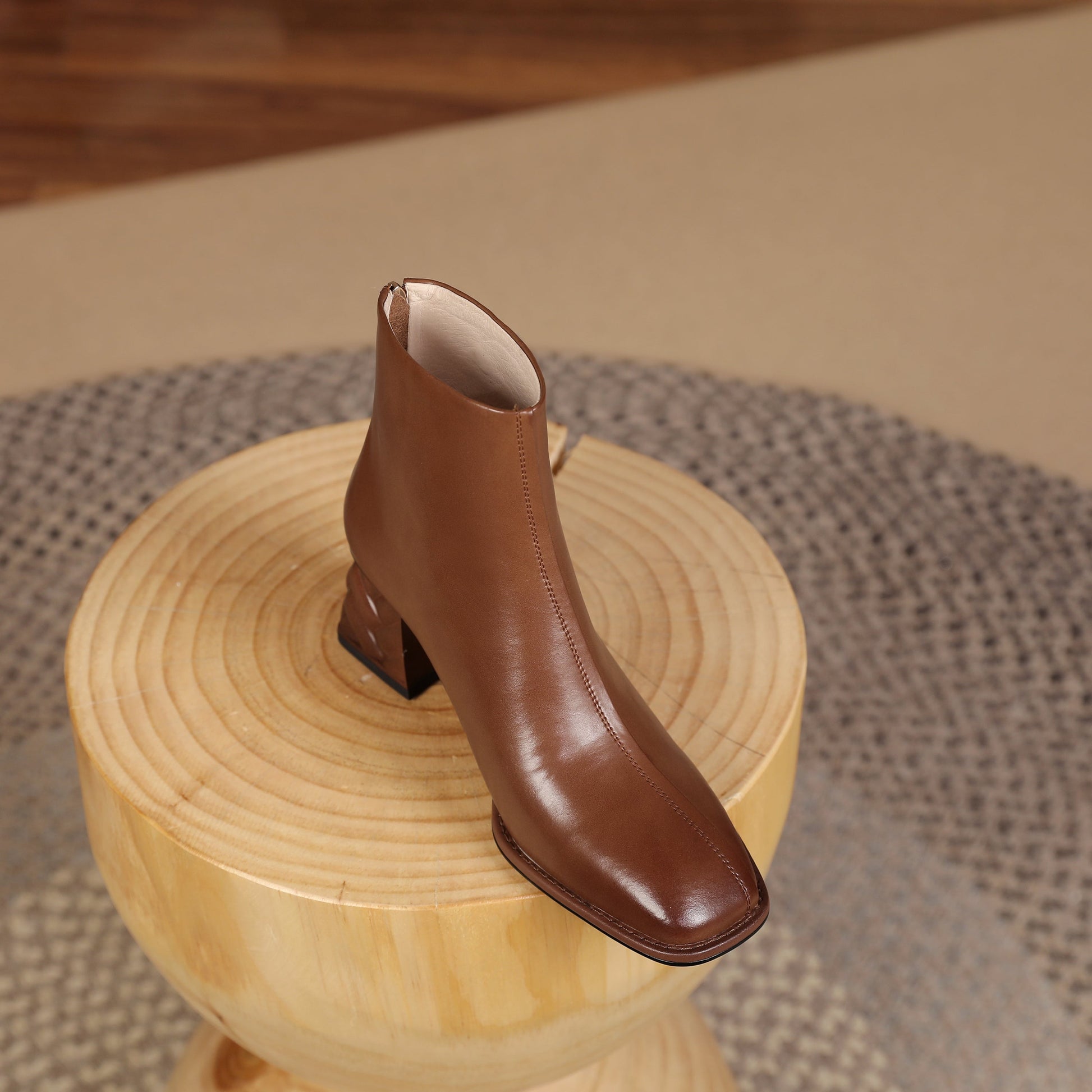 Stylish ankle boots designed with genuine leather, square toe, zipper and chunky heels can go with almost all your outfits.