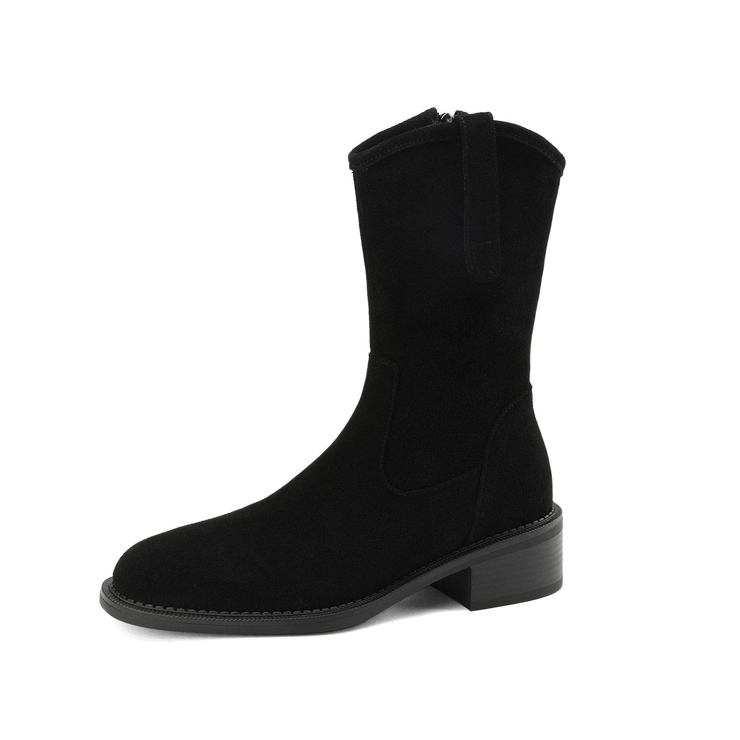 Casual mid calf boots designed with suede leather, round toe, side zipper and low heels can make you feel comfortable with every steps.