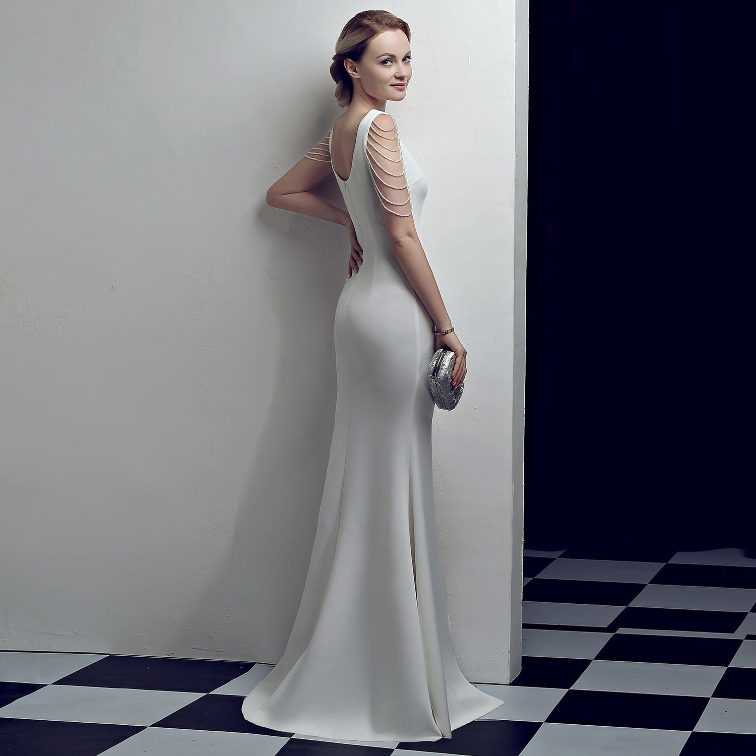 Nine Seven Women's Deep V Neck Back Zip Up Mermaid Sexy Side Split Evening Party Formal Ocassion Dress