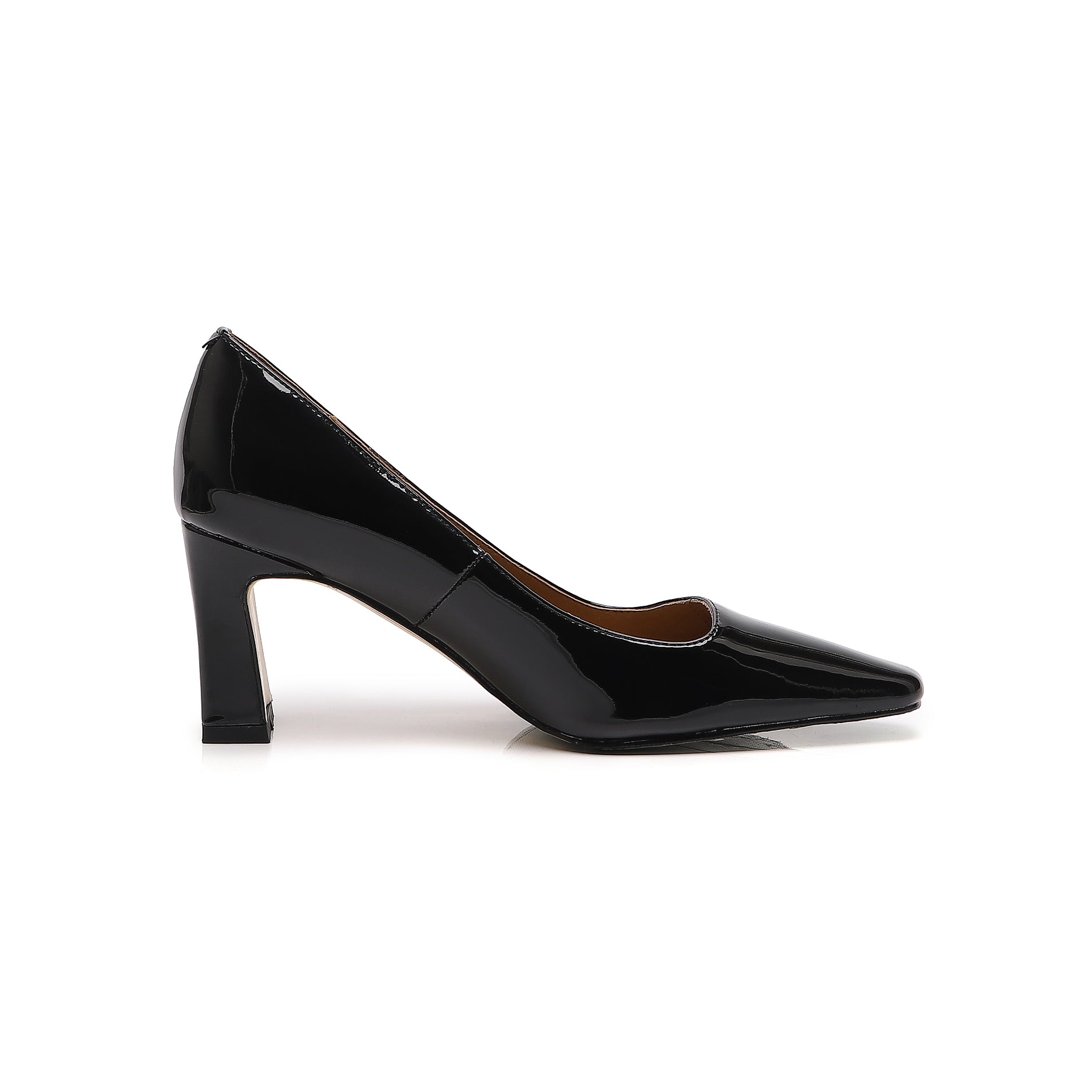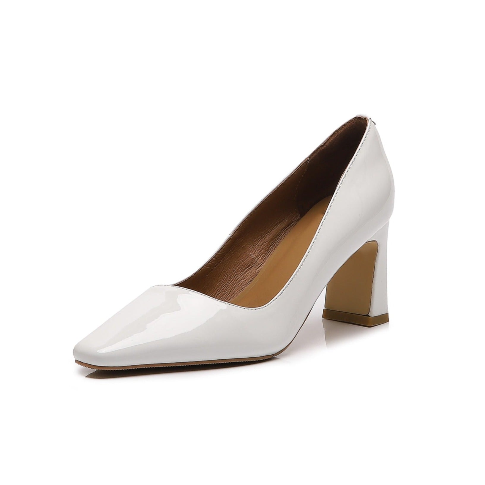 Glossy patent leather pumps shoes with square toe and chunky heels, more comfortable to wear.