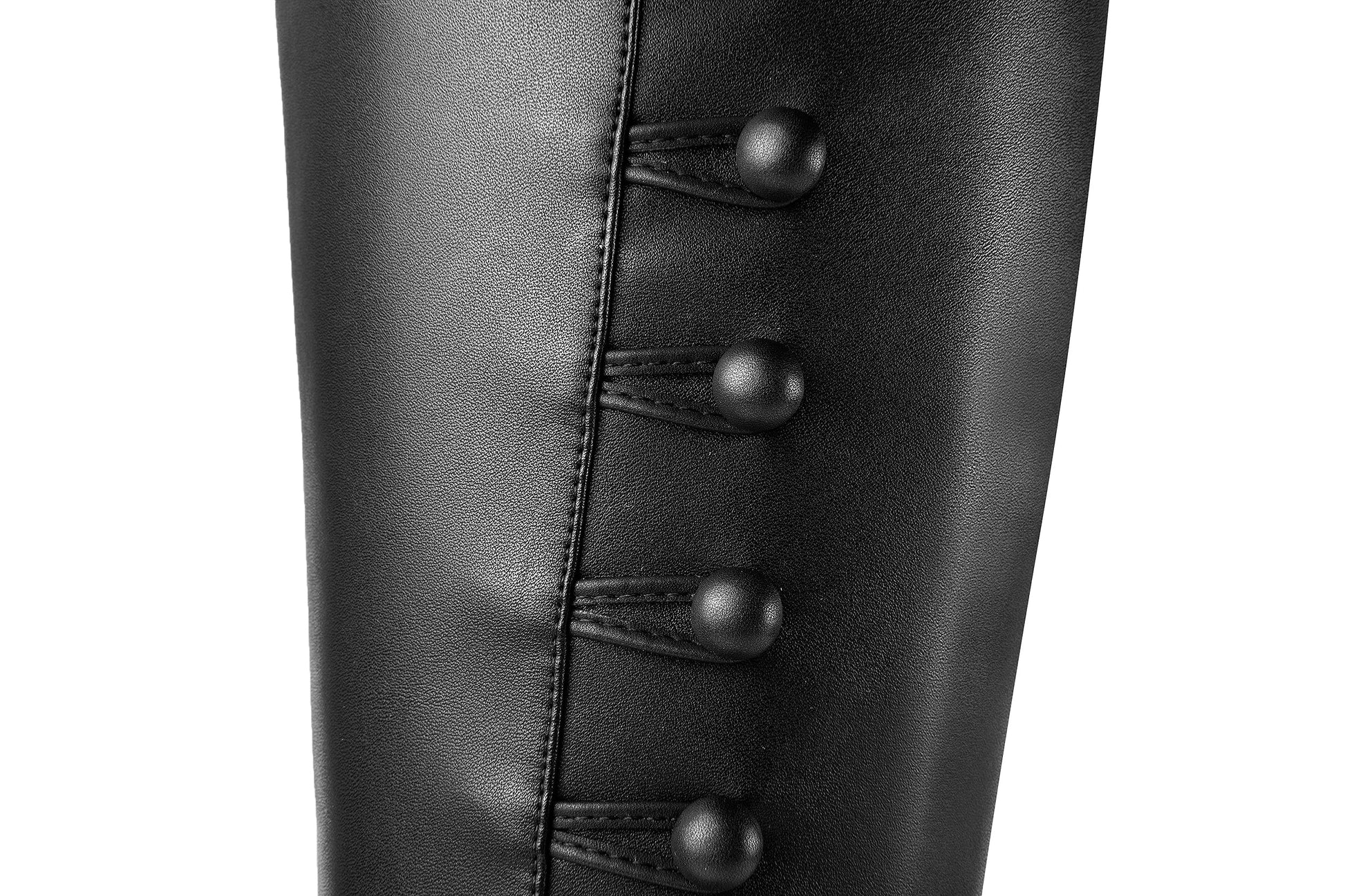 These stylish boots are characterized by pointed toe, mid heels and buttons decoration. They go well with any outfits and will definitely add polish to your chic look at evening parties, proms or daily life.
