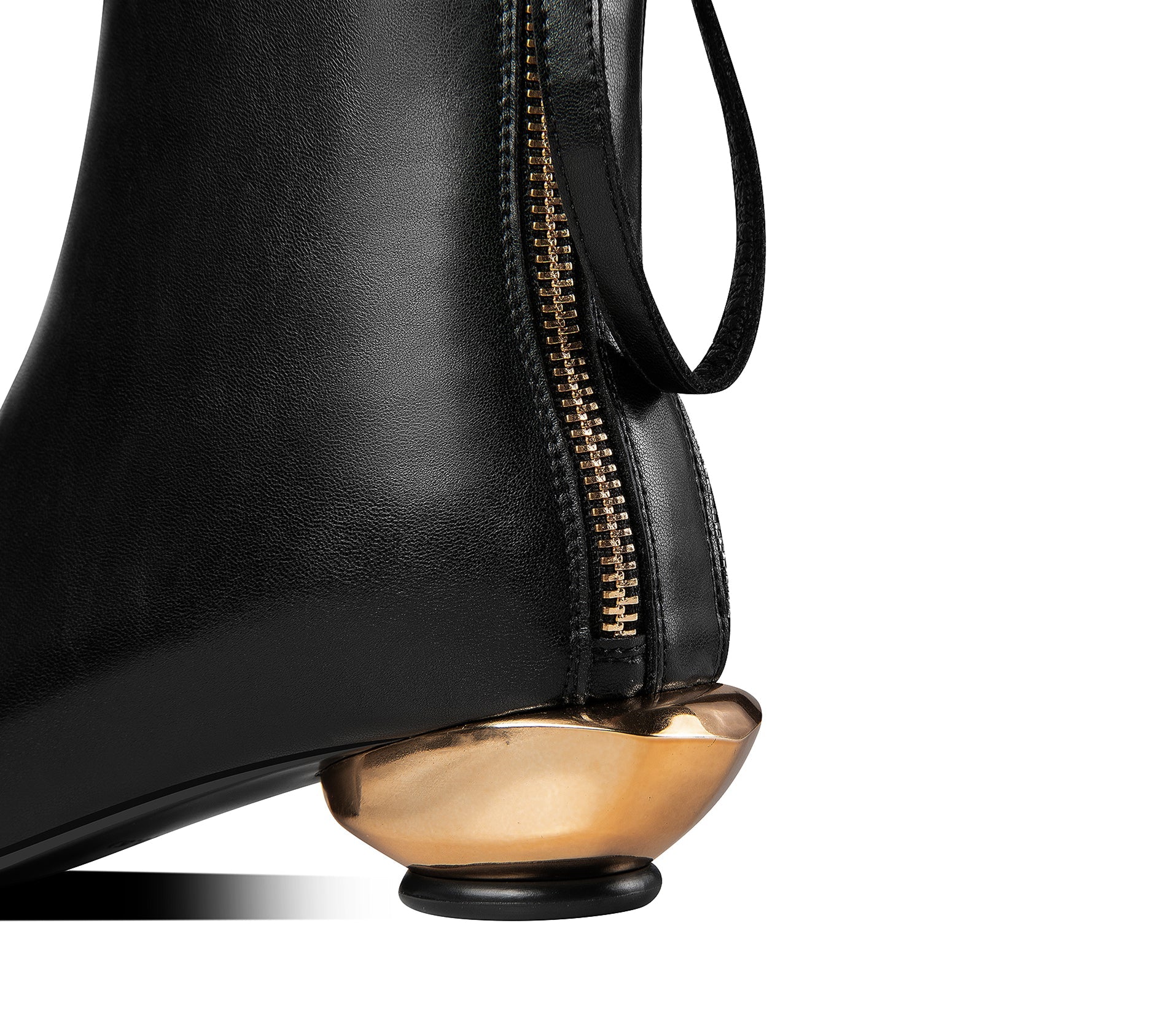 Elegant boots are designed with genuine leather, pointed toe, back double zipper and low chunky heels.These boots could go with different outfits.