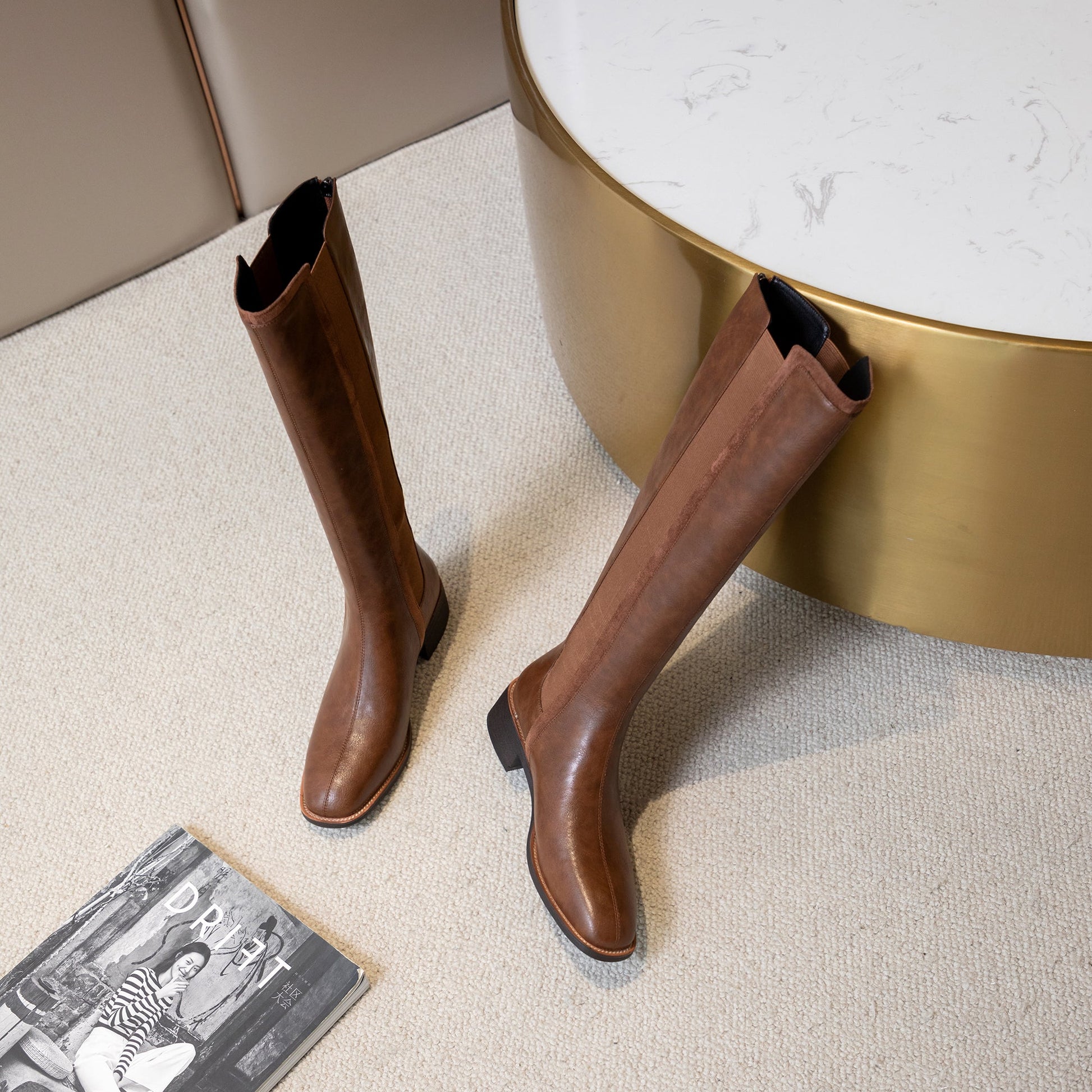 Stylish knee high boots are designed with genuine leather, round toe, back zip and comfortable heels.style are quite versatile.