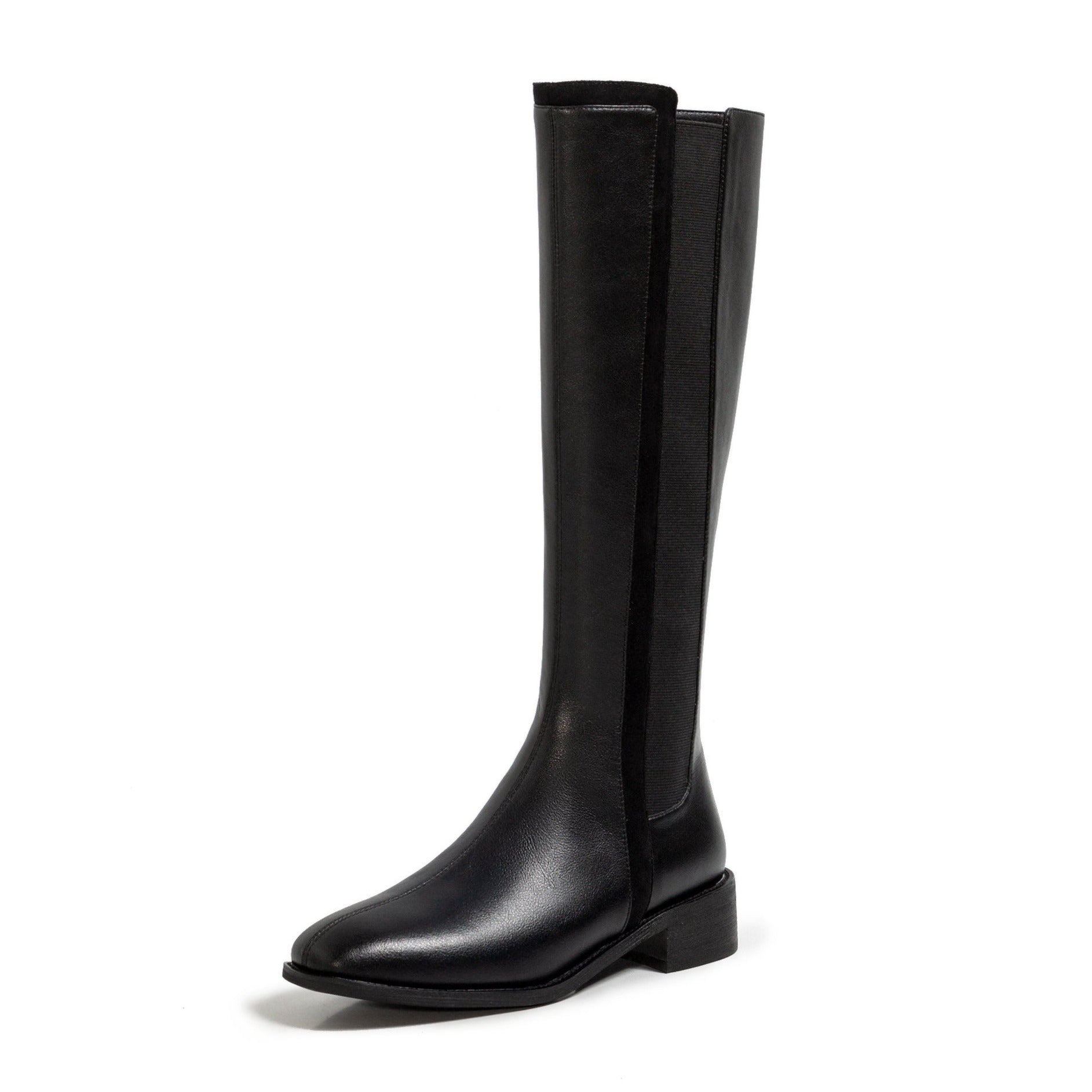 Nine Seven Women's Handmade Genuine Leather Round Toe Comfortable Low Chunky Heel Back Zip Up Knee High Riding Boots
