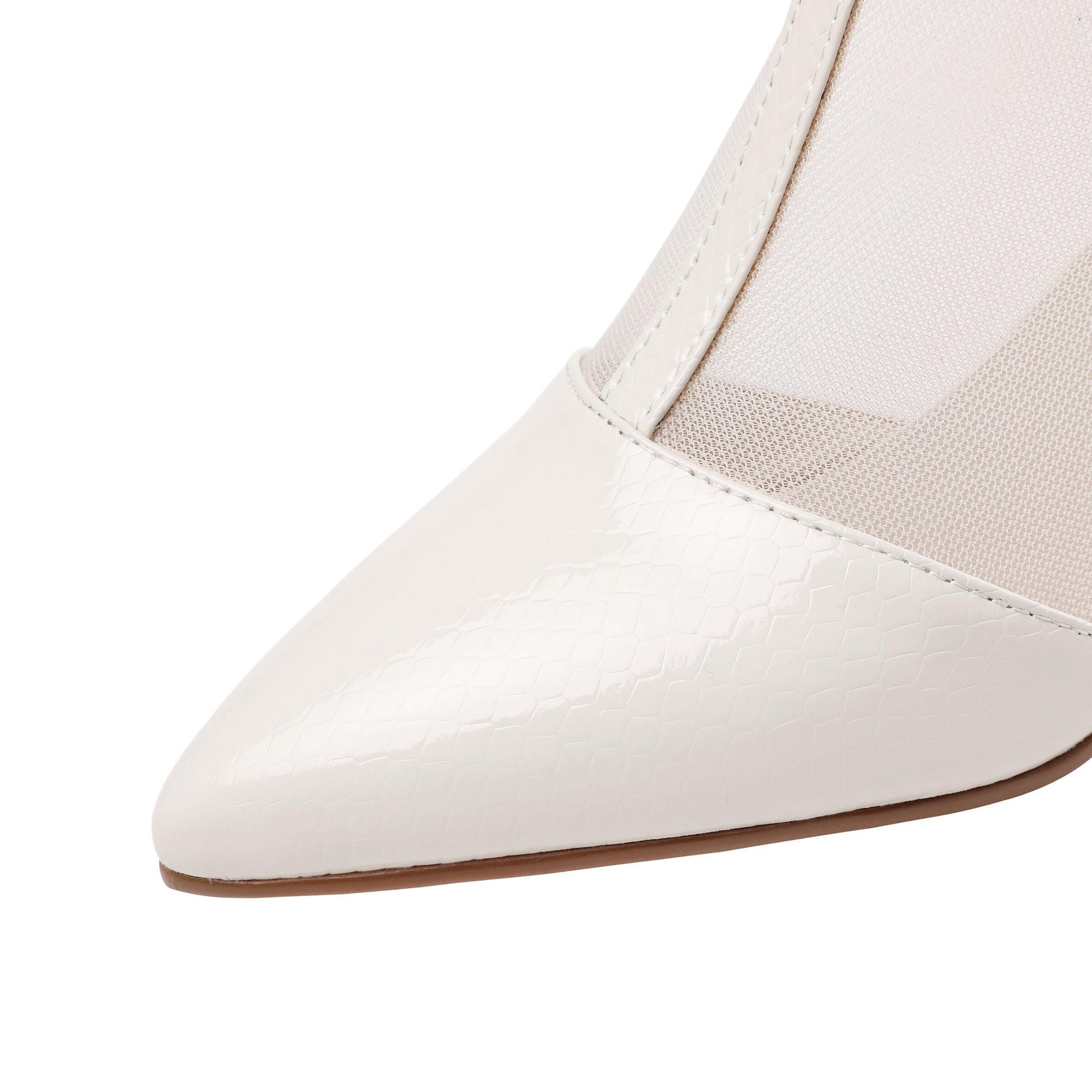 Nine Seven Women's Leather and Mesh Handmade Comfortable Spool Heel Back Zipper Pointy Toe Ankle Boots with Rhinestone and Crystal