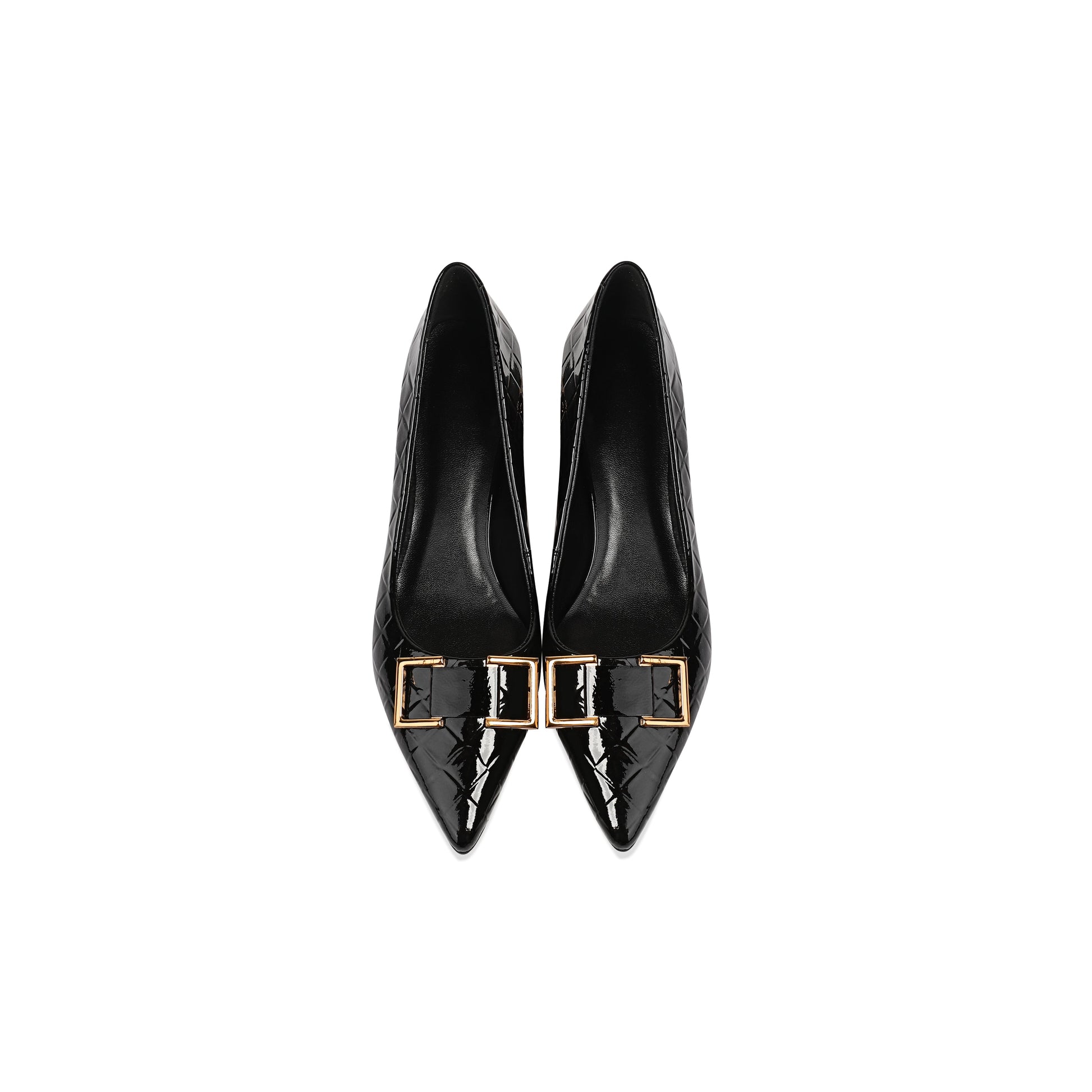 Stylish loafer shoes deisgned with patent leather, pointed toe, buckle and low chunky heels can make you feel comfortable with every steps.