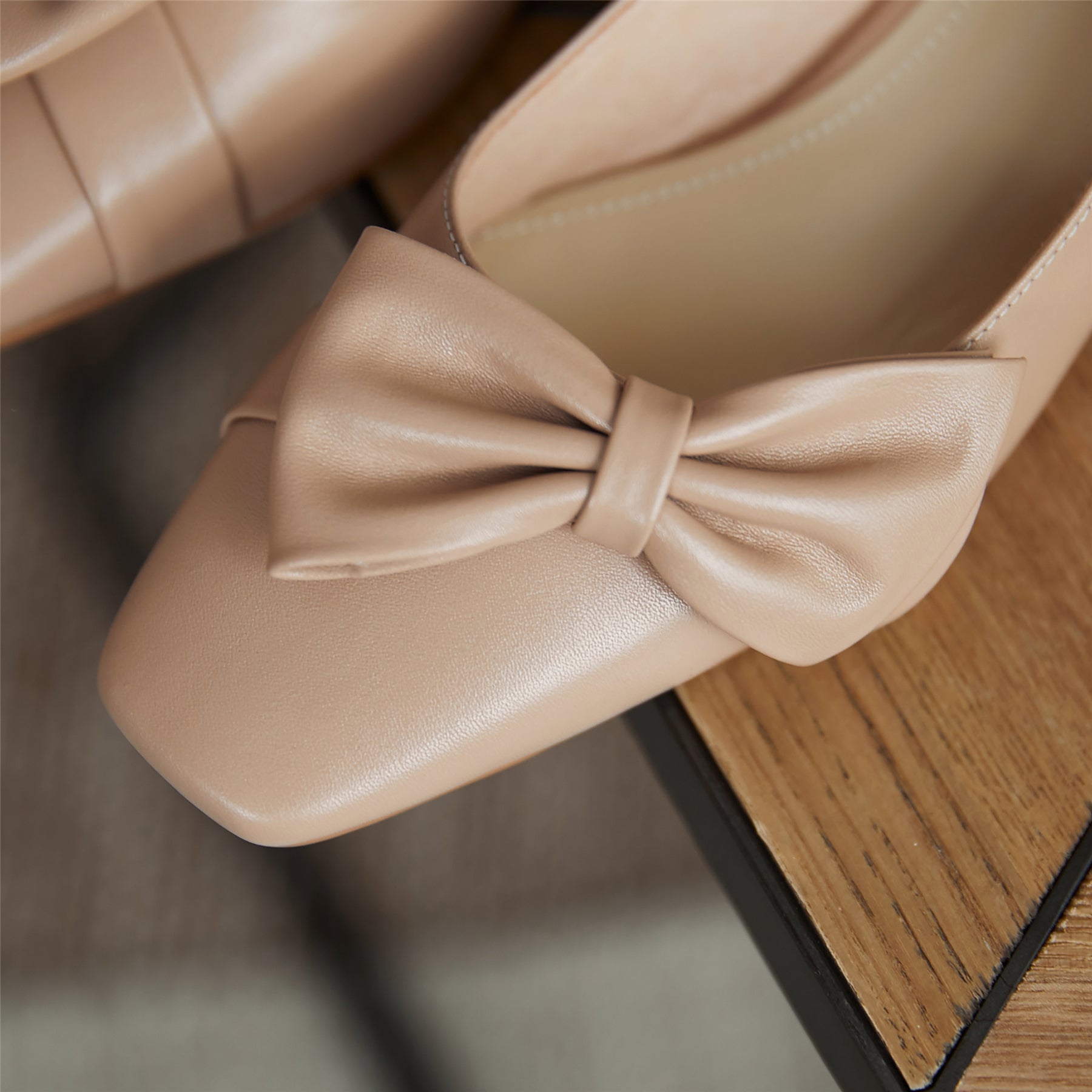 These cute pumps are designed with genuine leather, square toe, bow and low heels.Slip-resistant sole could show your confidence in every step.