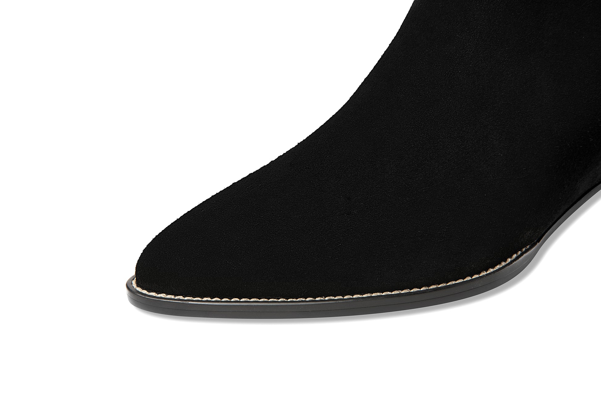 Suede leather ankle boots designed with pointed toe, side zipper and inner heels can go with almost all your outfits.