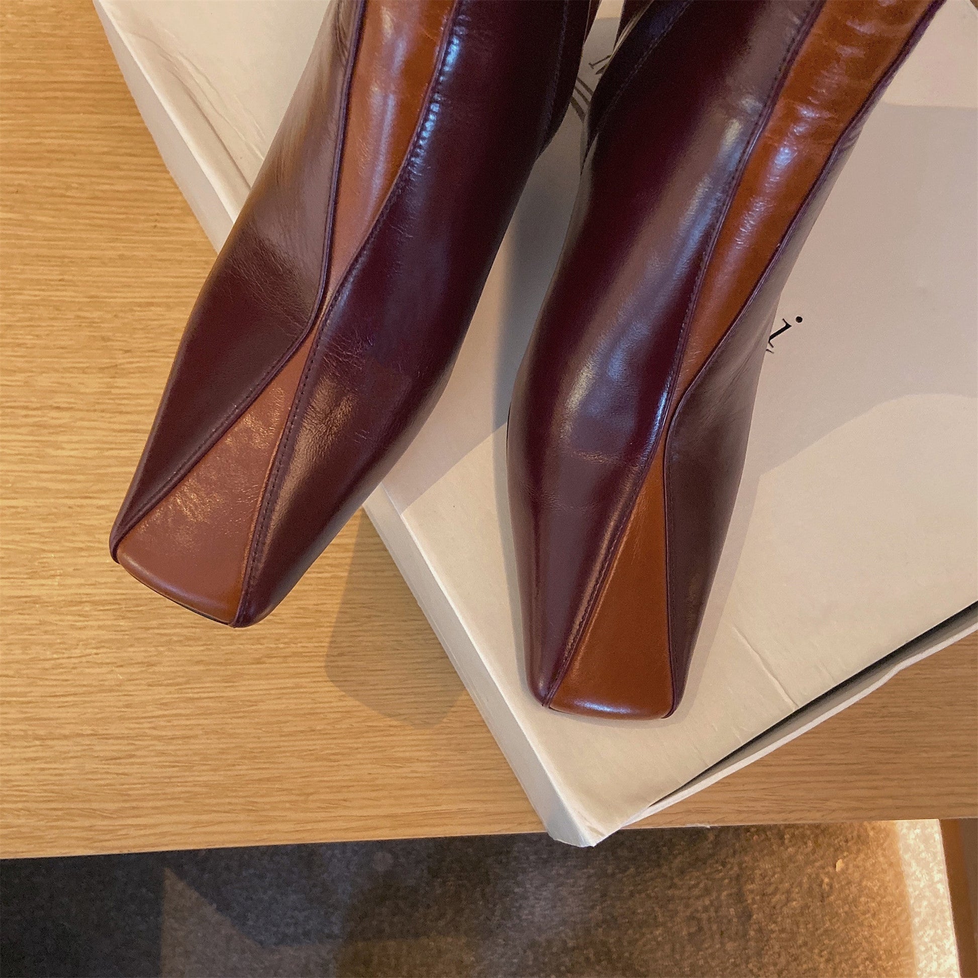 Nine Seven Women's Genuine Leather Square Toe Side Zip Handmade Spool Heel Trendy Bootie