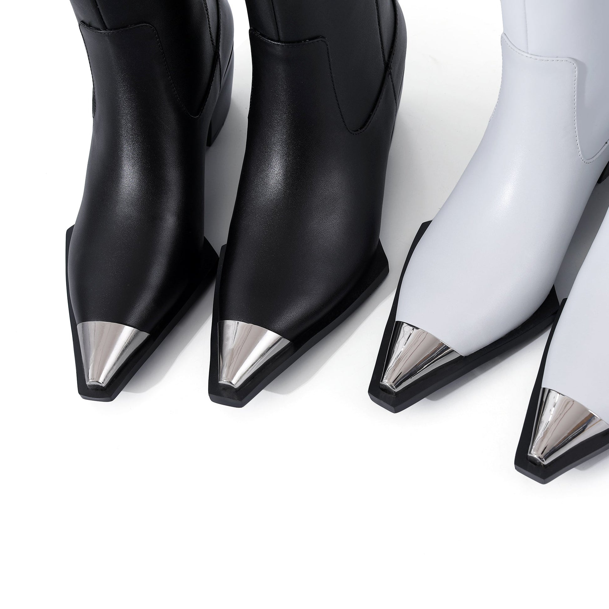 Stylish boots are designed with genuine leather, pointed toe, mid chunky heel, western style design to keep up with fashion trend and slip-resistant sole could show your confidence in every step.