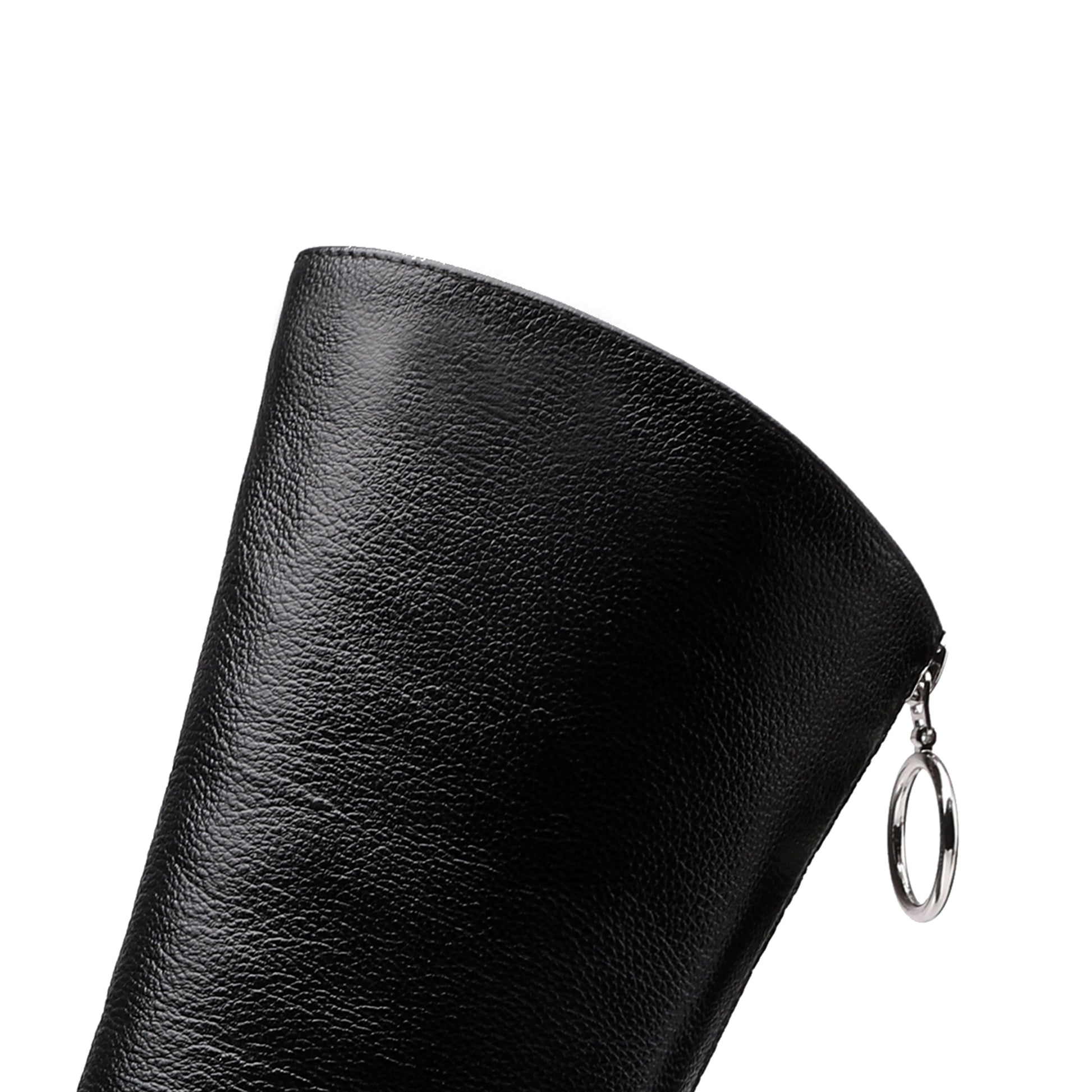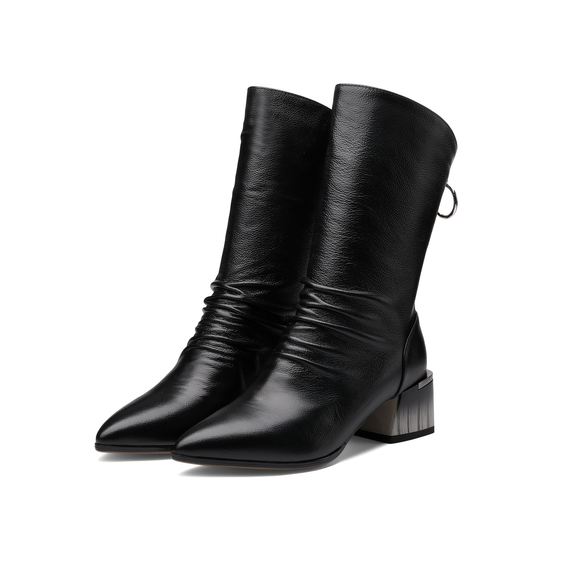 Comfortable mid-calf boots are designed with genuine leather, pointed toe, mid chunky heel, ruffle design to keep up with fashion trend and slip-resistant sole could show your confidence in every step.