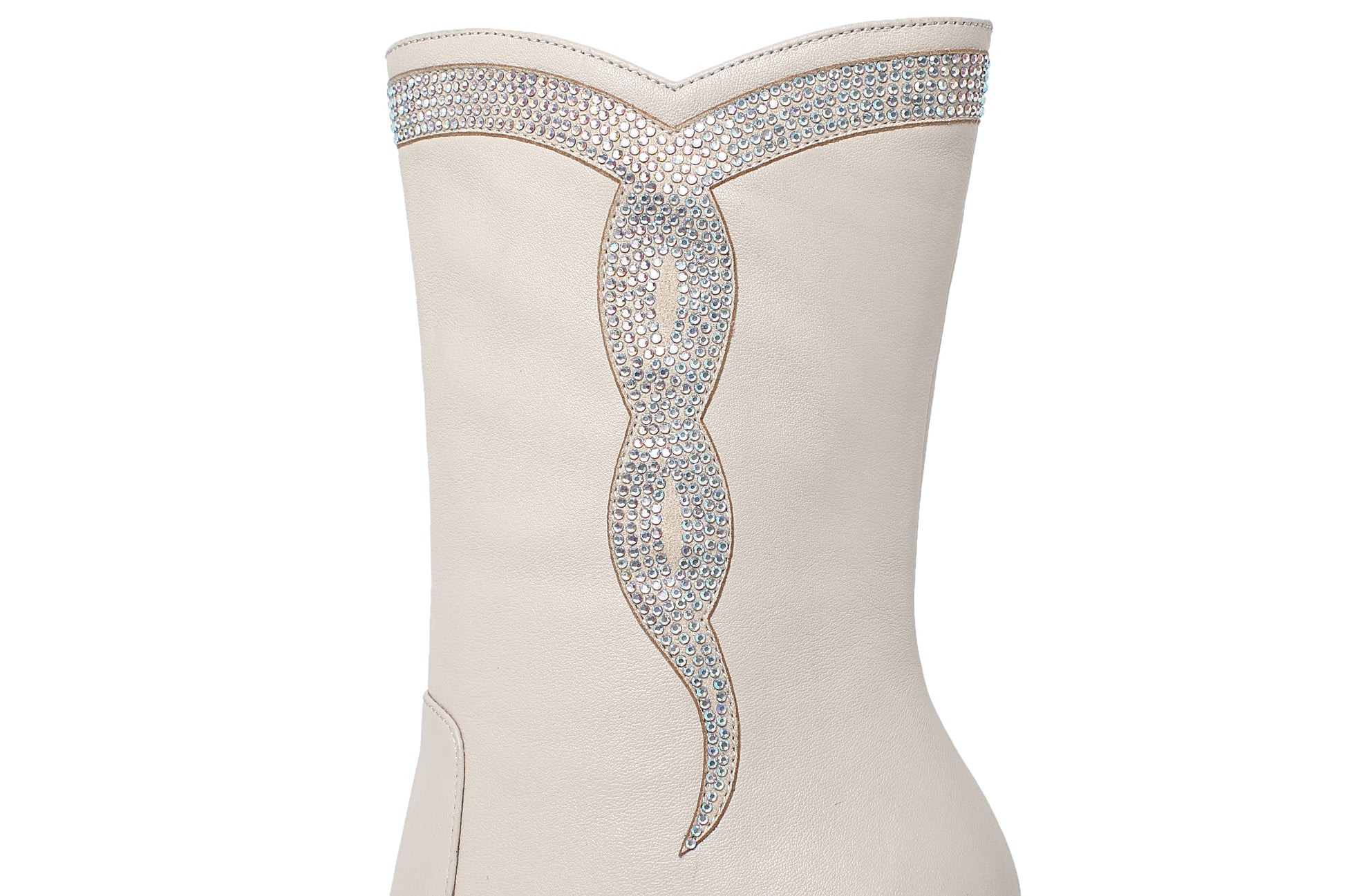 Nine Seven Women's Handmade Leather Glitter Pattern Decor Pointed Toe Spikes-Stiletto High Heel Platform Side Zip Up Sexy Mid-Calf Boots