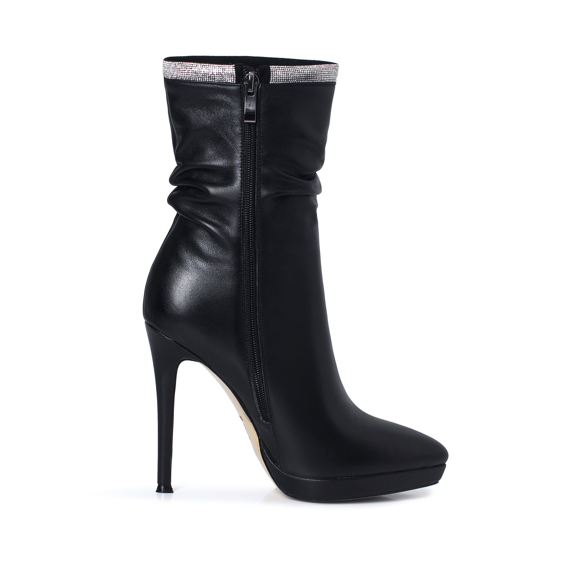 Nine Seven Women's Handmade Leather Spikes-Stiletto High Heel Platform Pointed Toe Side Zip Up Glitter Mid-Calf Boots