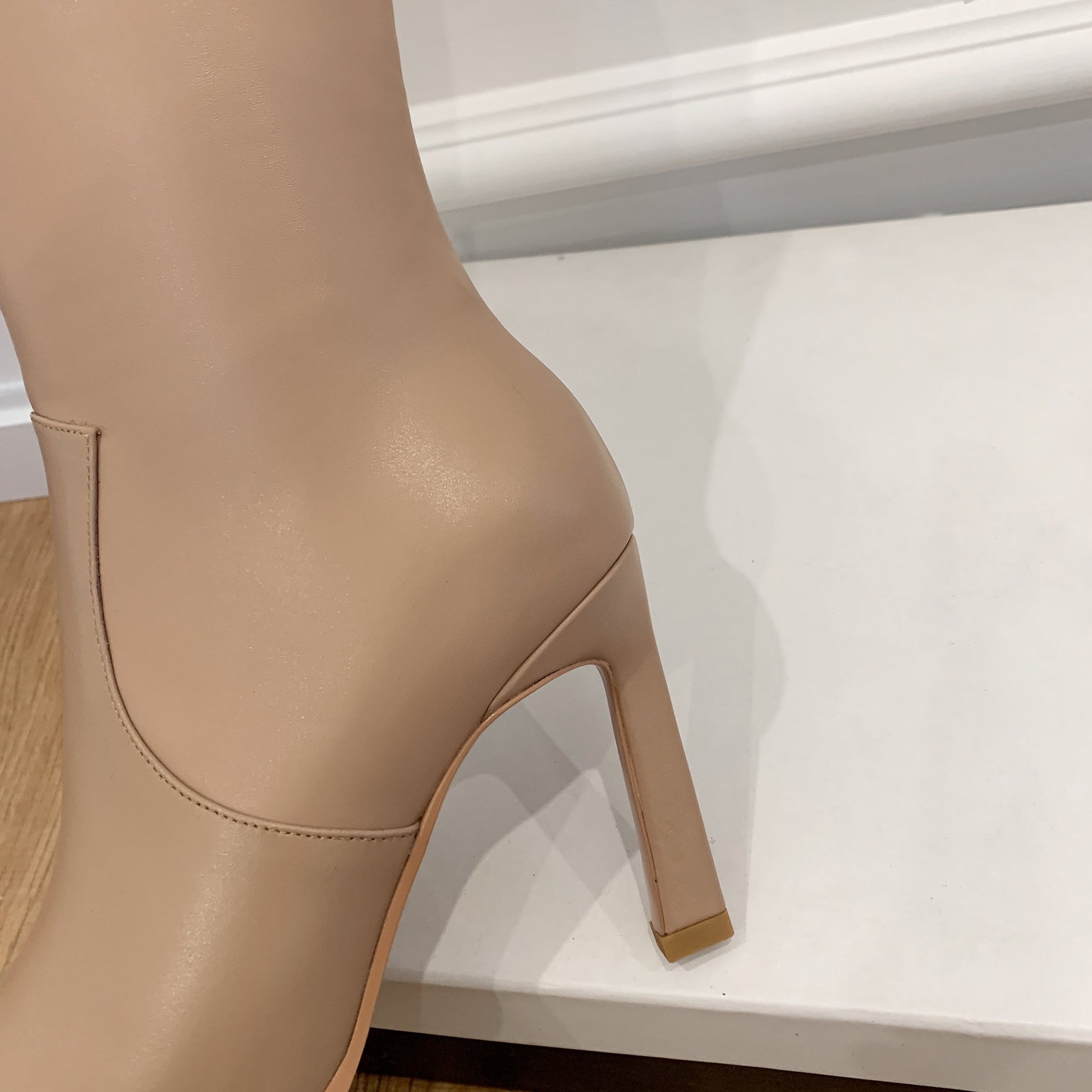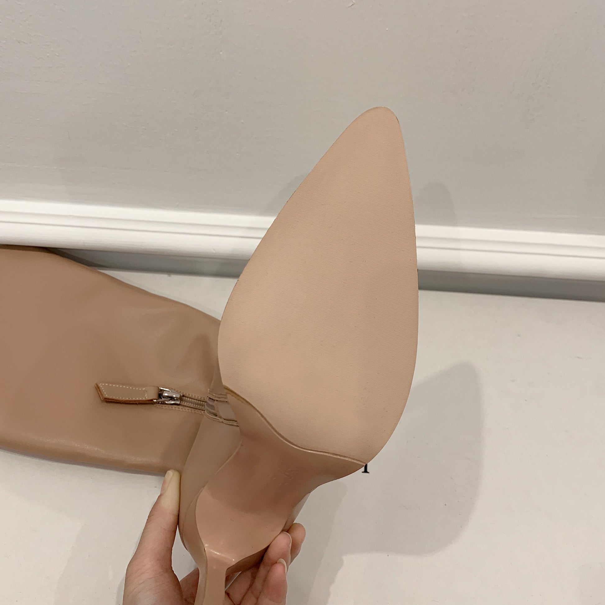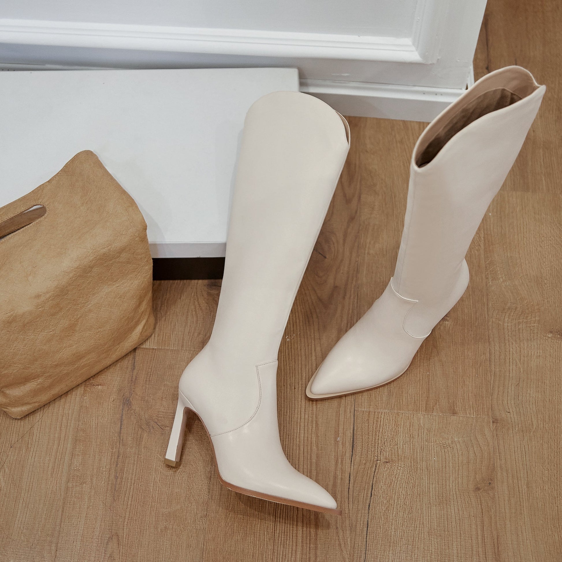 Stylish knee high boots featured with genuine leather, pointed toe, stiletto high heels and half side zipper can go with almost all your outfits.
